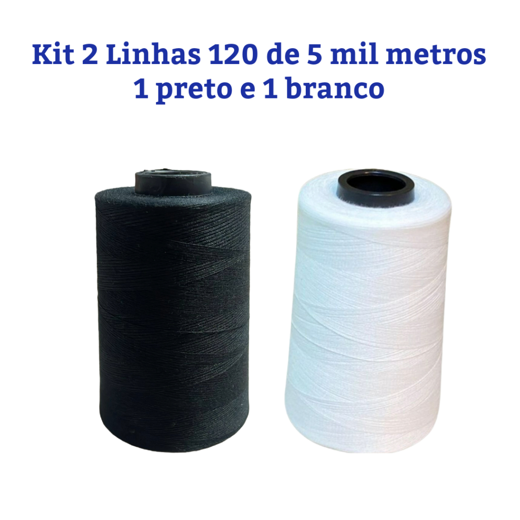 kit 2 Linhas de Costura 120 - 5.000 Metros - Cor Branco, Preto e Colorido