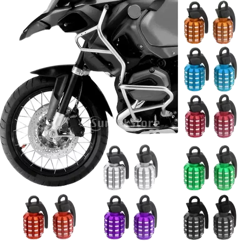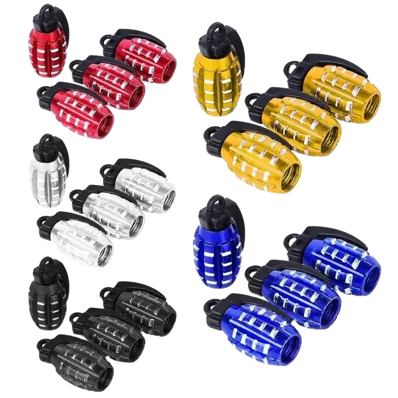 kit 2 Pares Tampa de Válvula Para Pneu de Carro Moto Bicicleta Modelo Bomba Granad4