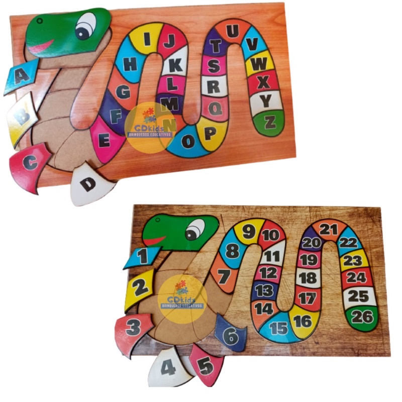 kit 2 Quebra Cabeças Alfabeto e Números Educativo Pedagógico Alfabetização em MDF