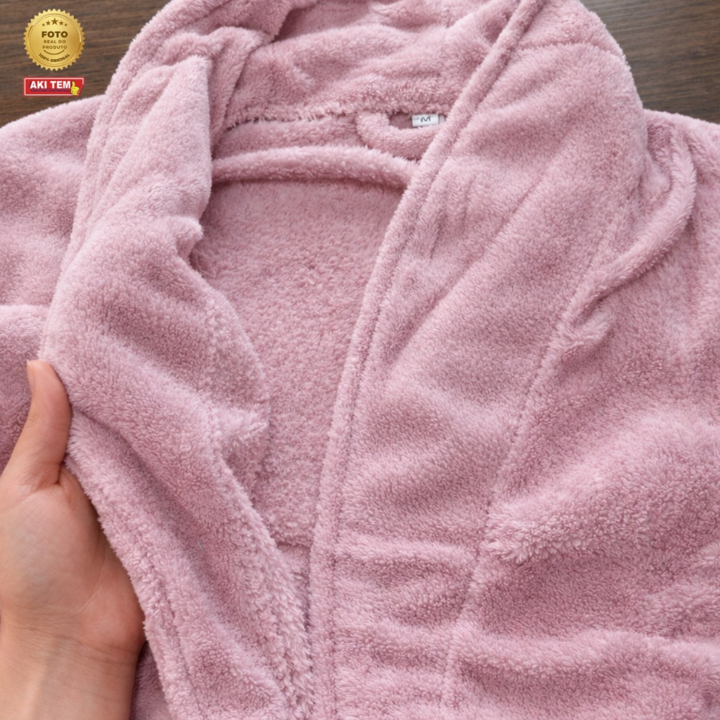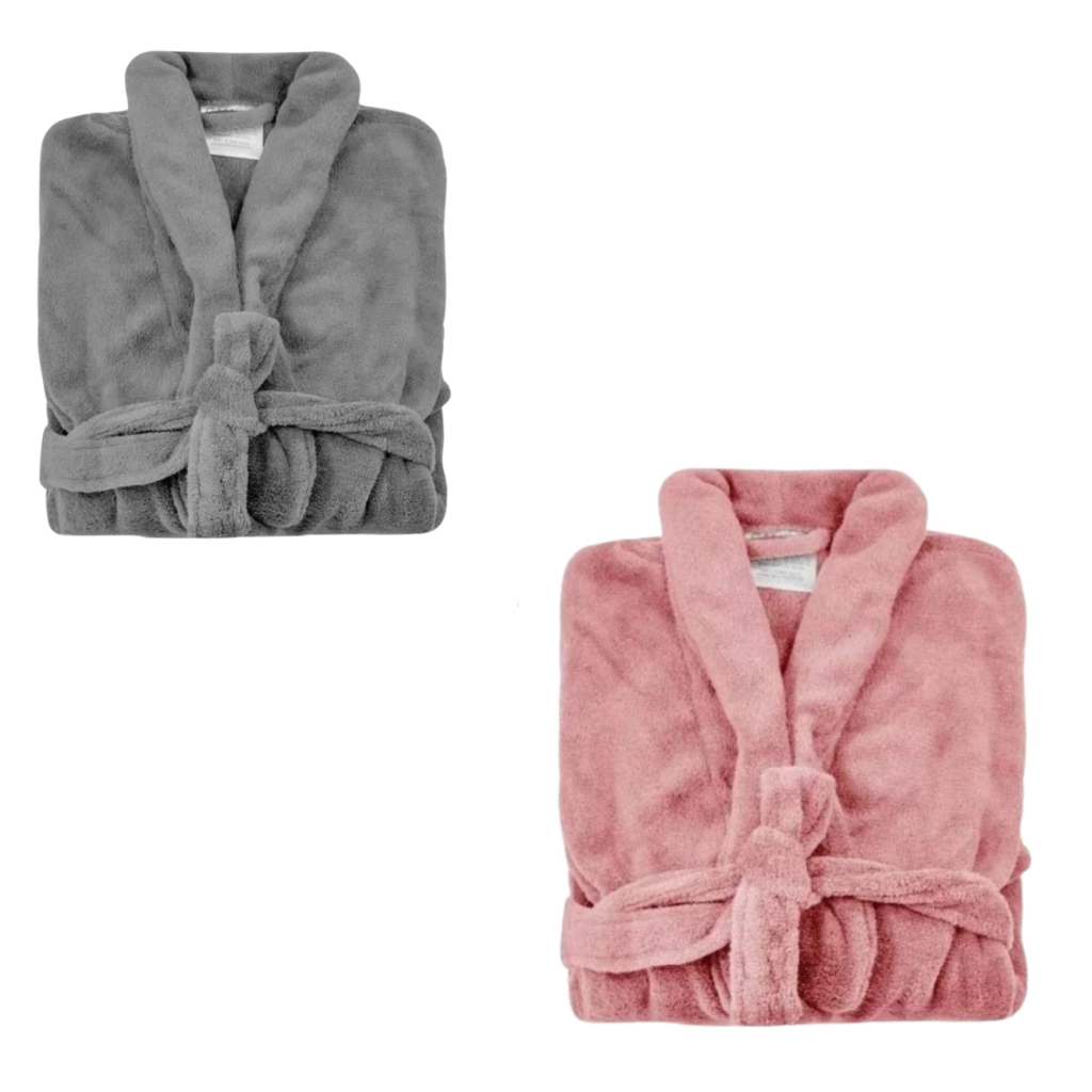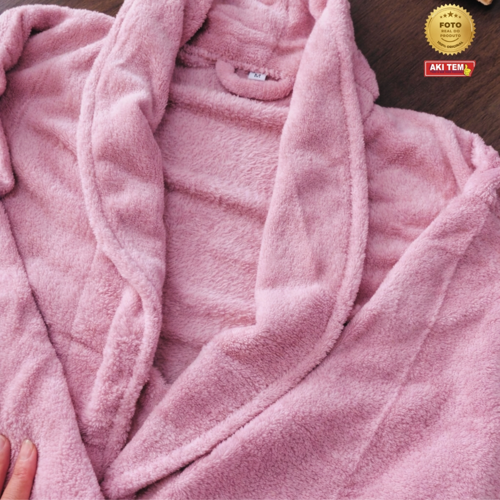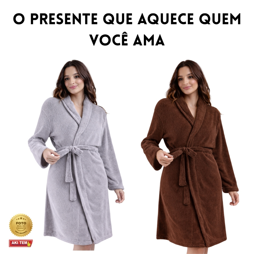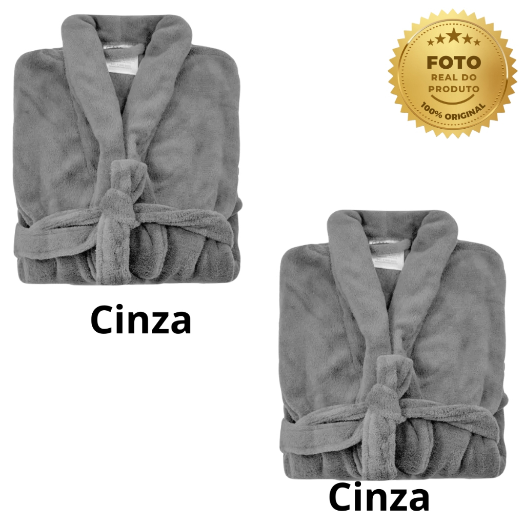 Kit Roupão Casal Presente Plush Microfibra Premium Super Macio e Quentinho Inverno 2 Peças Corttex