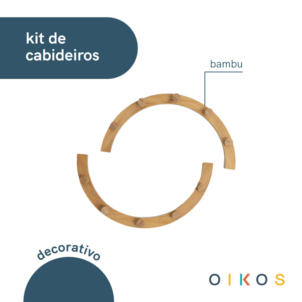 kit 2 cabideiros arcos circulo redondo modulares de bambu 5 pinos cada - Oikos