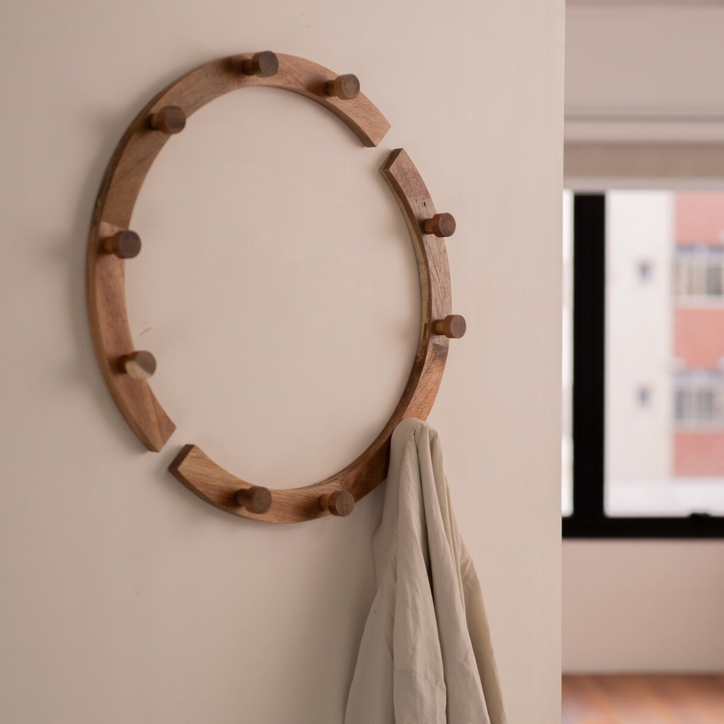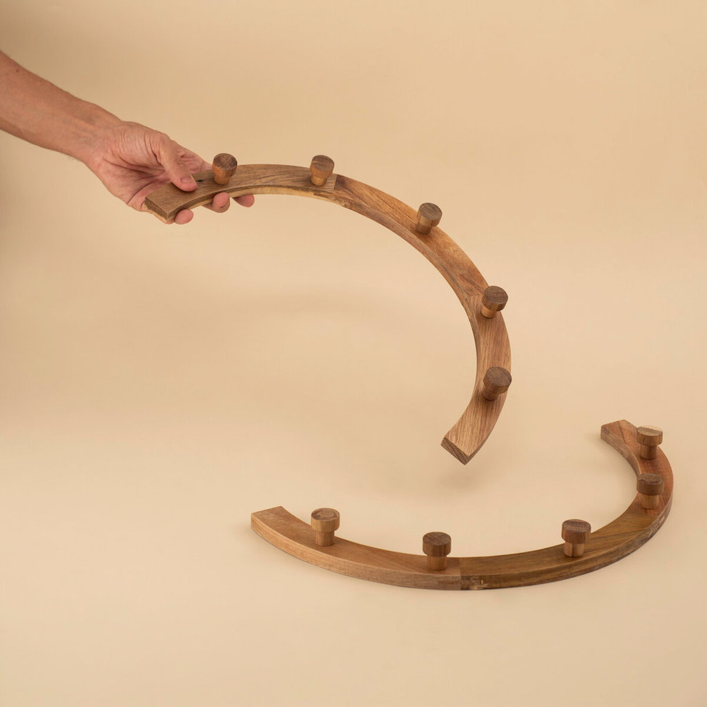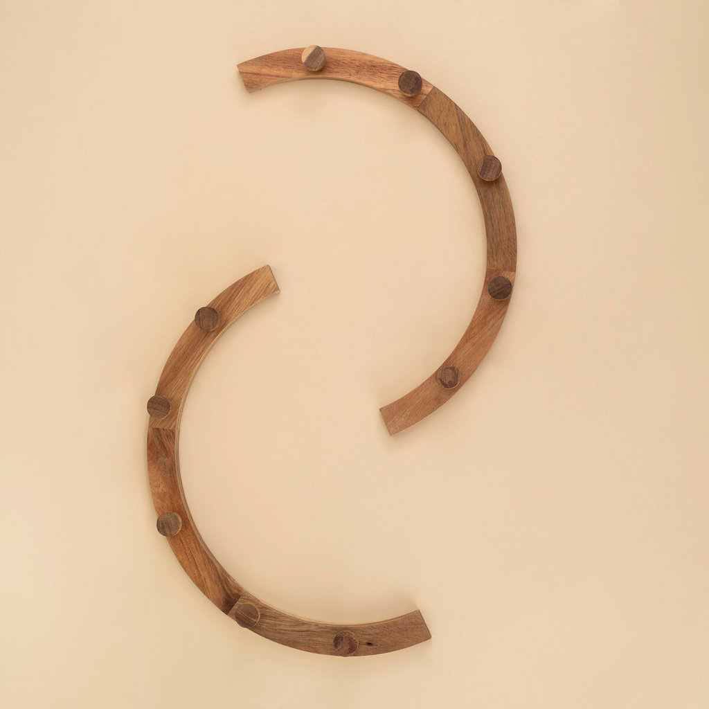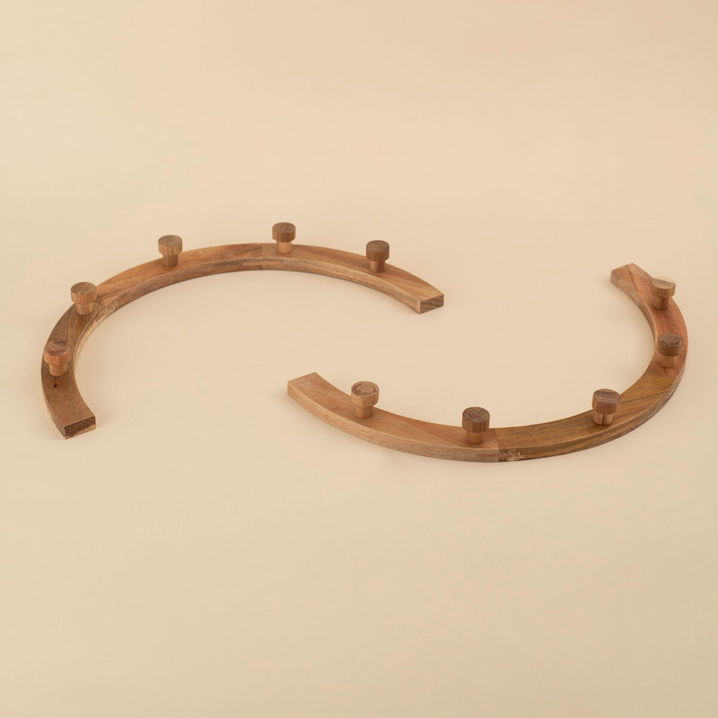 kit 2 cabideiros de madeira acácia arcos modulares com 5 pinos resistente - Oikos