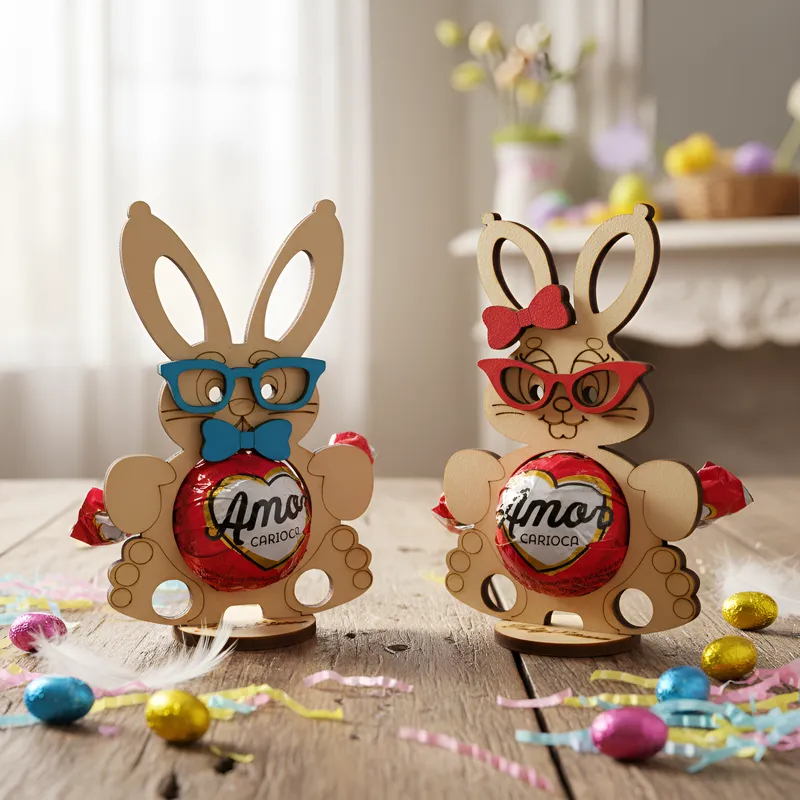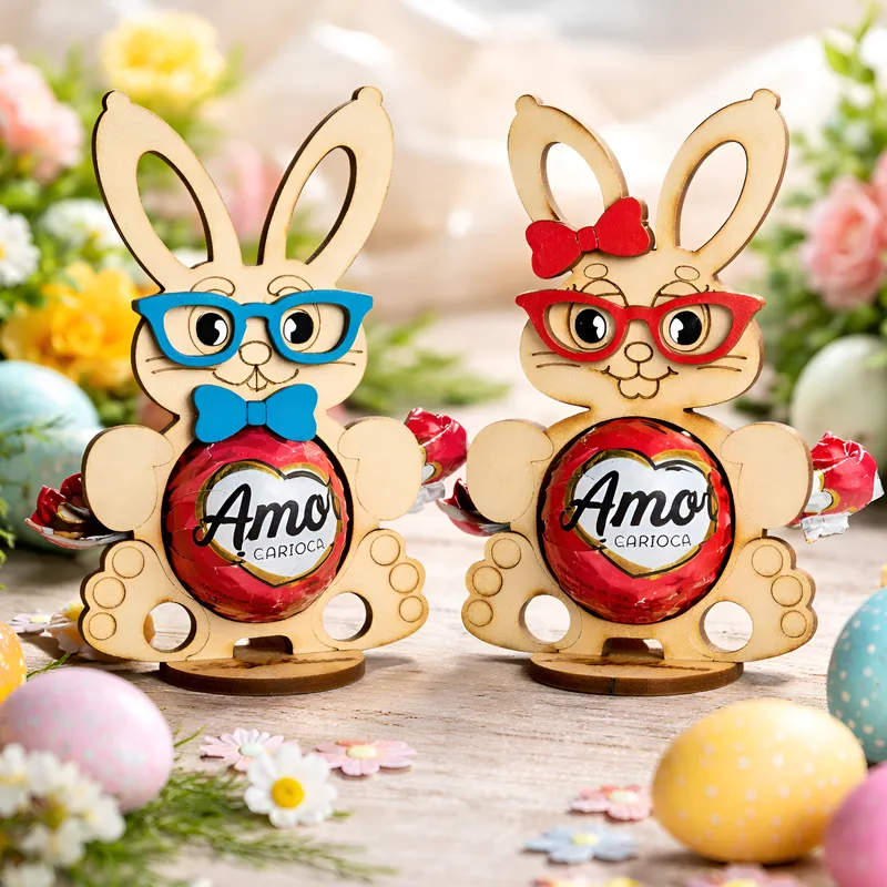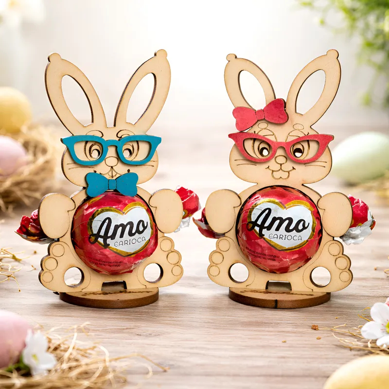 kit 20 Lembrancinha Porta Bombom Coelho da Páscoa Mdf Cru