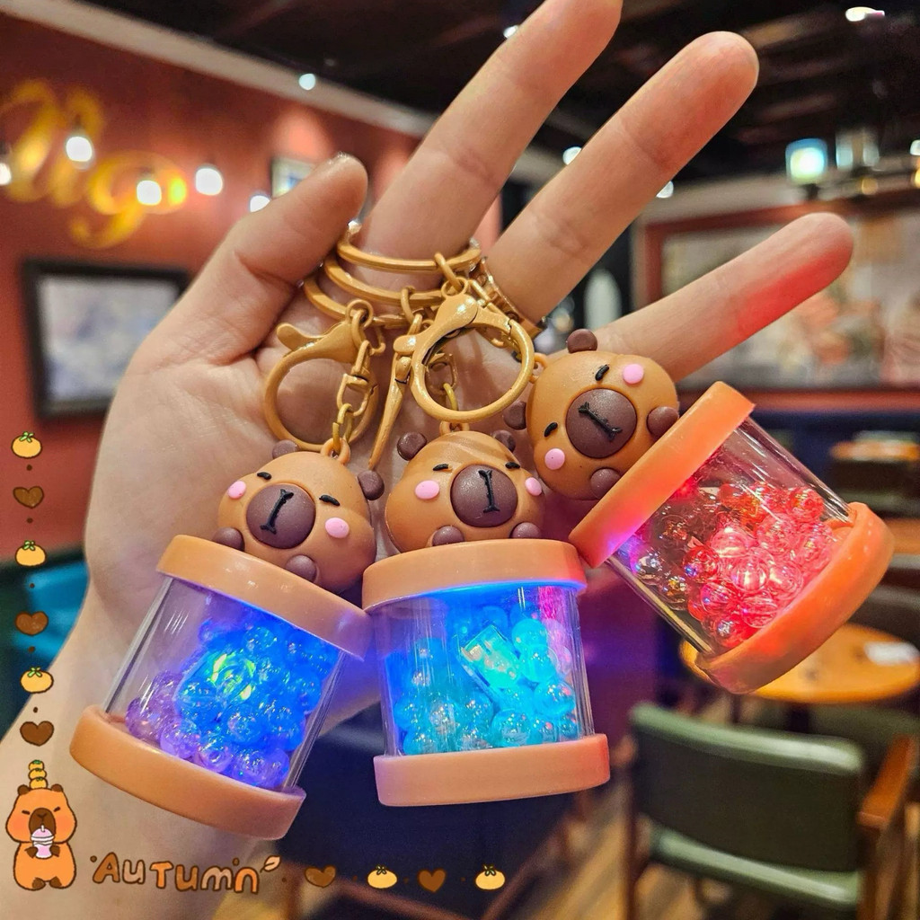 kit 3 Chaveiro com luz LED, pingente, formato de barril de vinho, capivara, portátil, adequado para meninas aleatório
