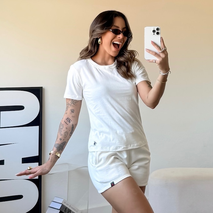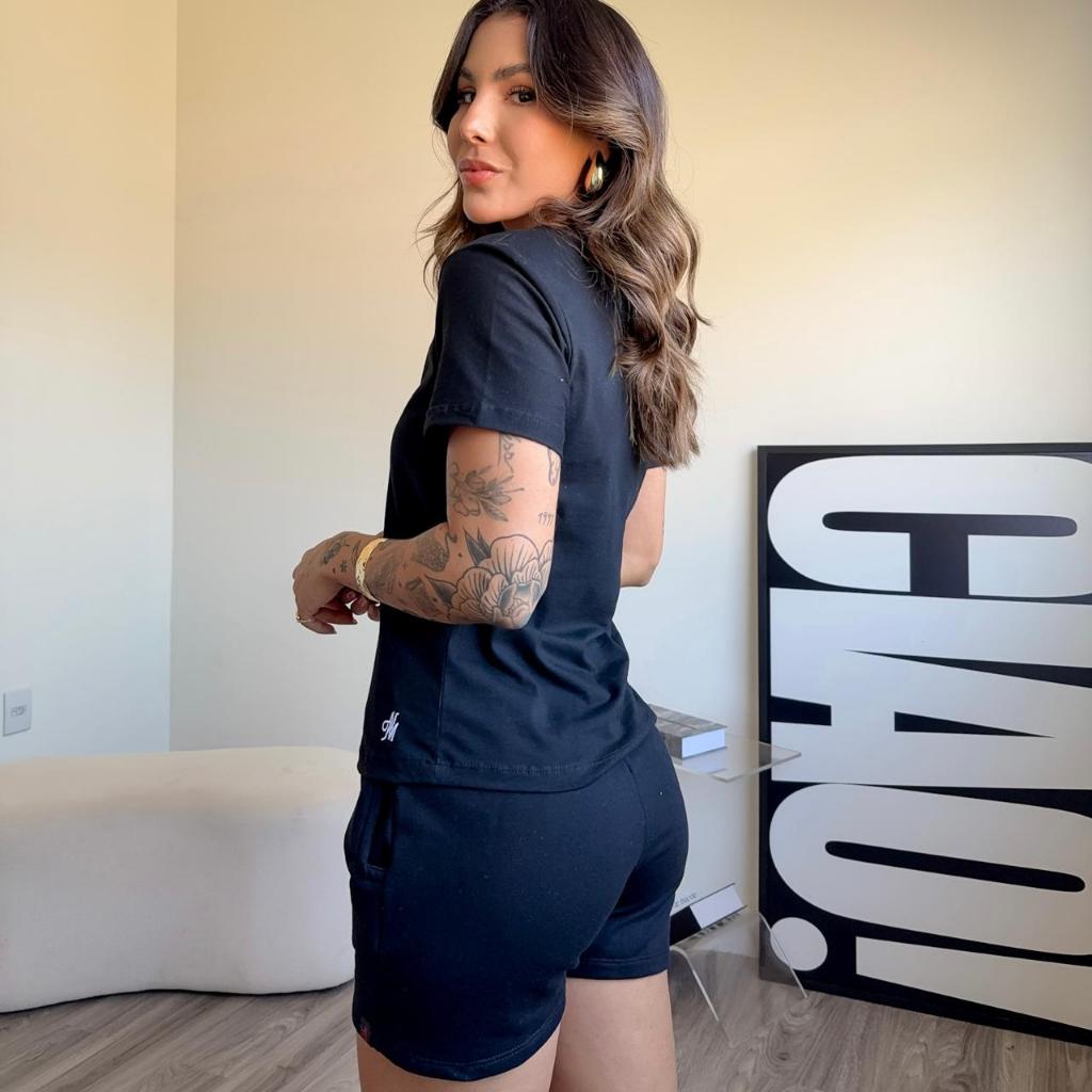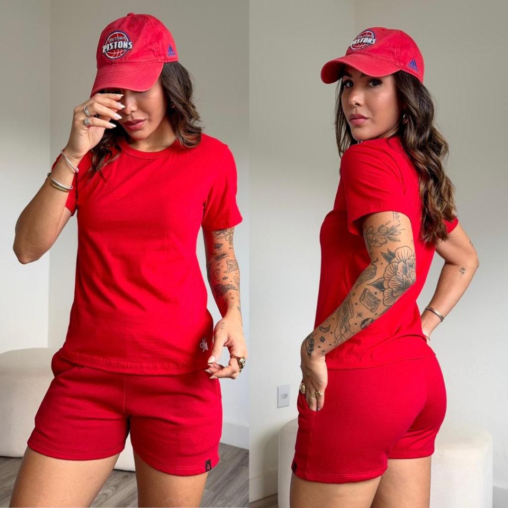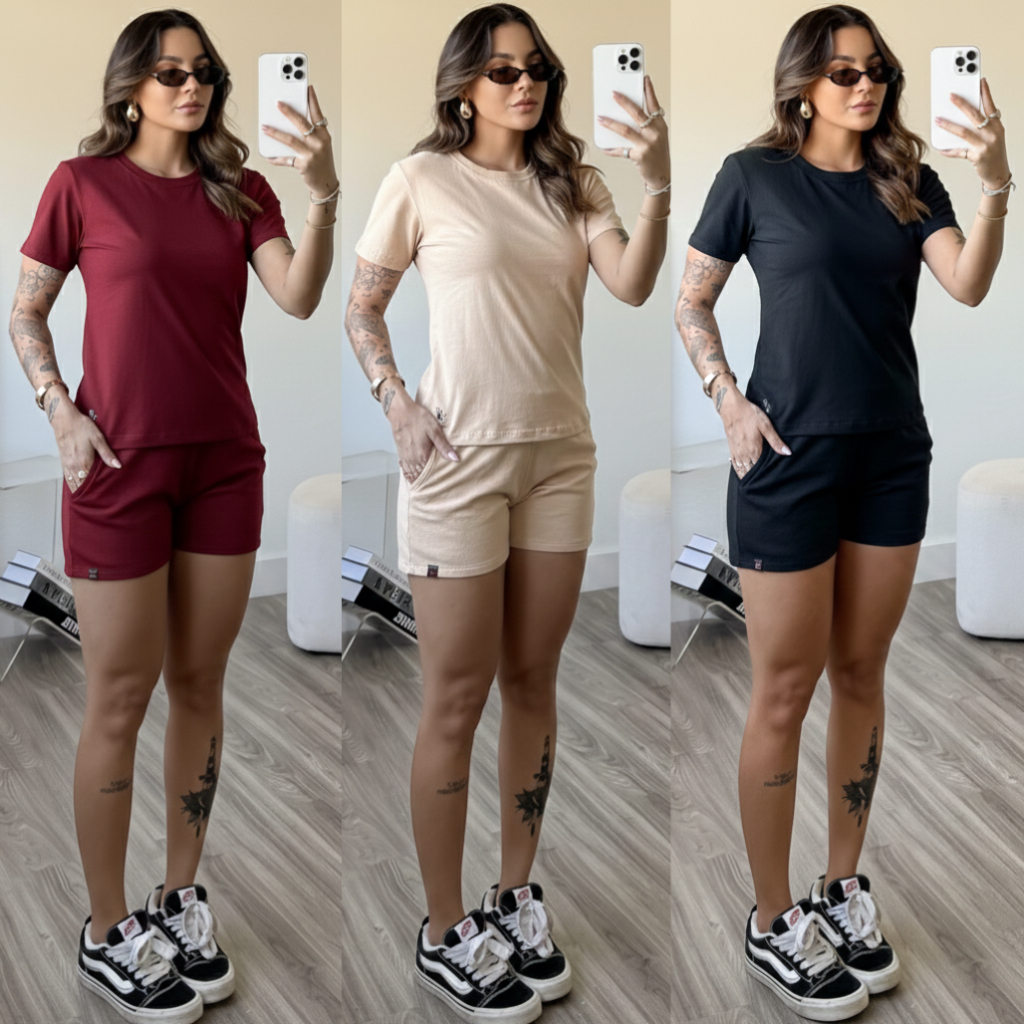 kit 3 conjunto feminino short feminino de moletom camiseta básica feminina blusa mais short de bolso blusa gola o