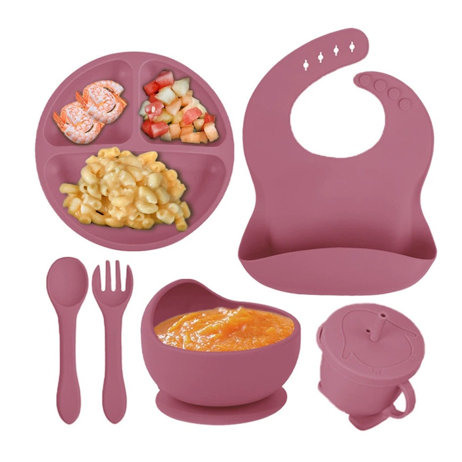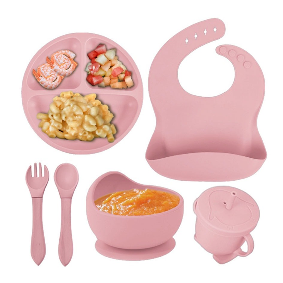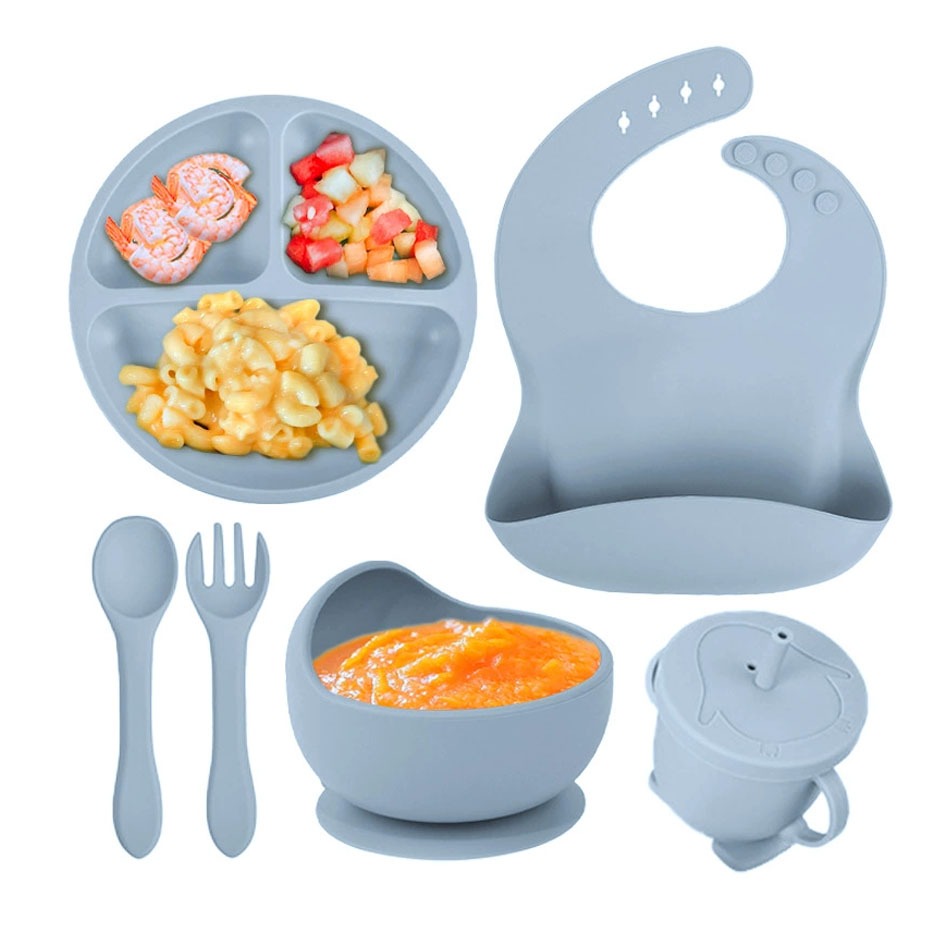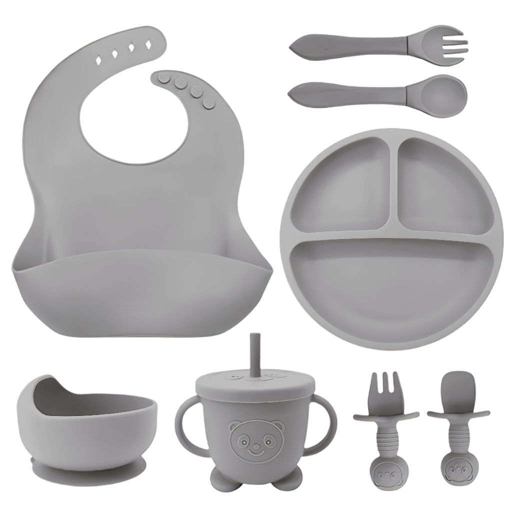 kit 8/6 Peças Talheres alimentação bebê silicone kit Talheres Infantil Com Ventosa Canudo Colher Babador Garfo