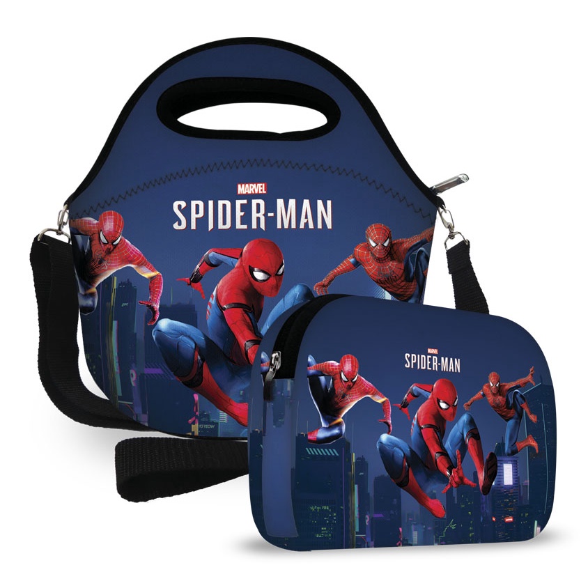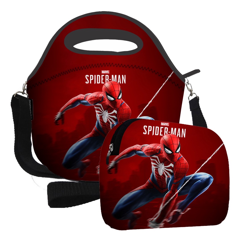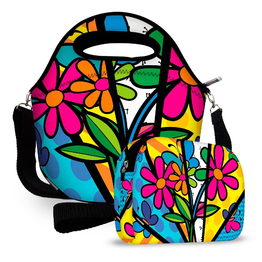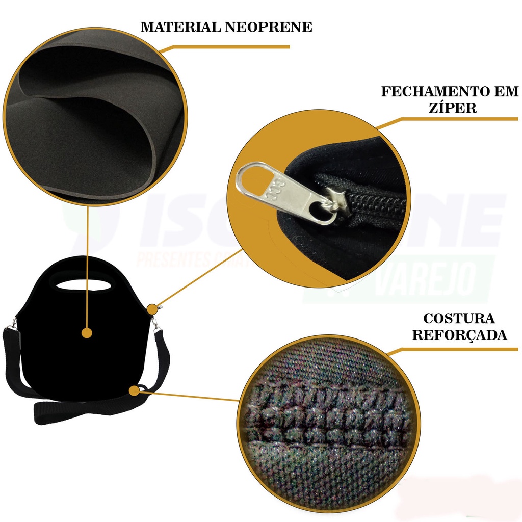 kit Bolsa Térmica Feminina e Masculina infantil Lancheira Marmita + Necessaire Neoprene Varias Estampas