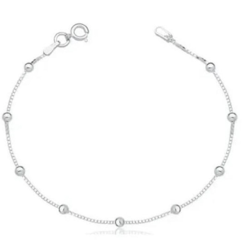 kit Colar e Pulseira Prata 925 Veneziana com Bolinha