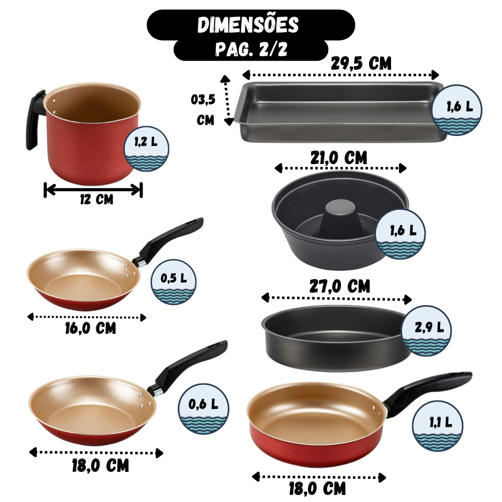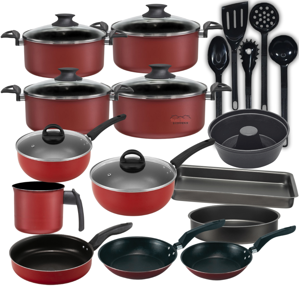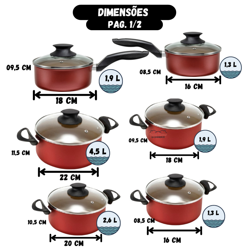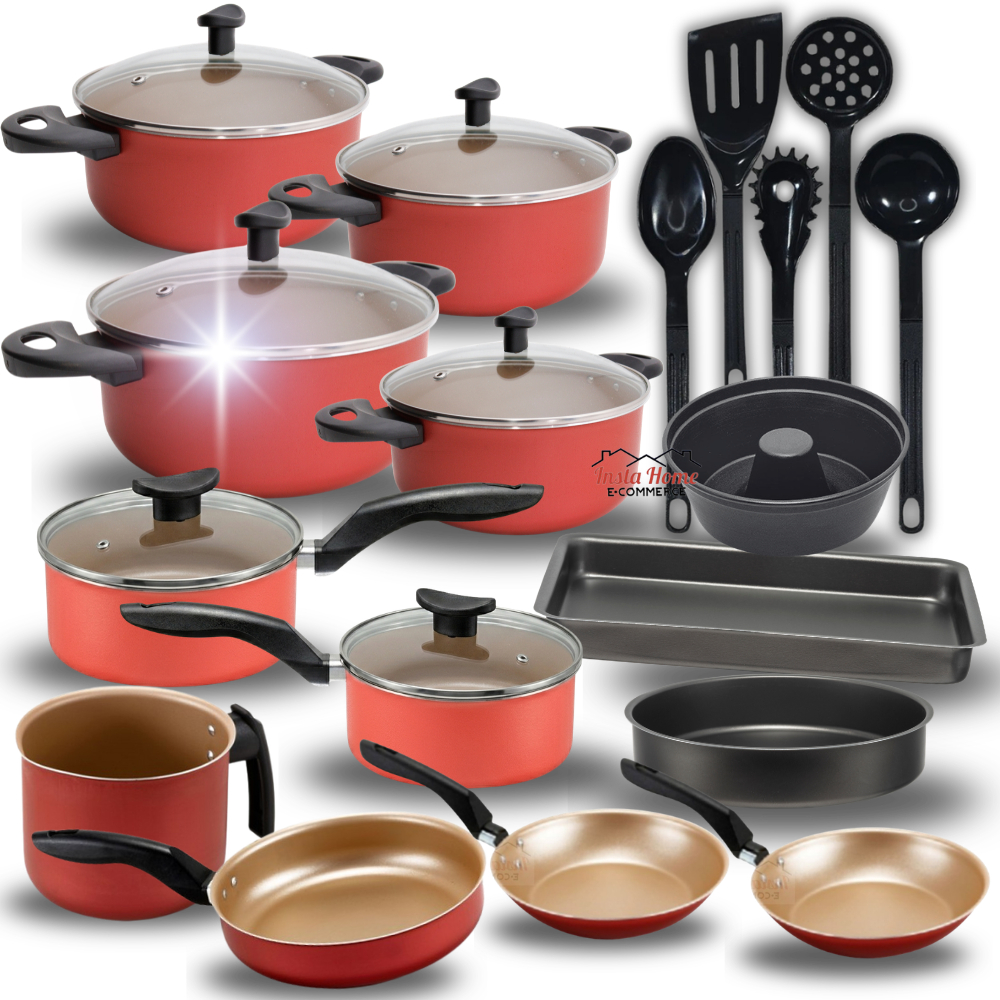 kit Jogo de panelas 18 peças Antiaderente Teflon Com Tampa de Vidro Conjunto