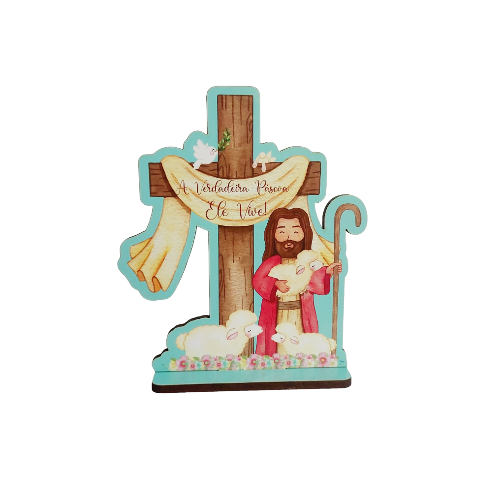 kit Lembrancinha Cruz páscoa Ele Vive com base mdf 3mm 10cm