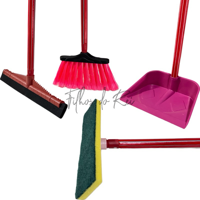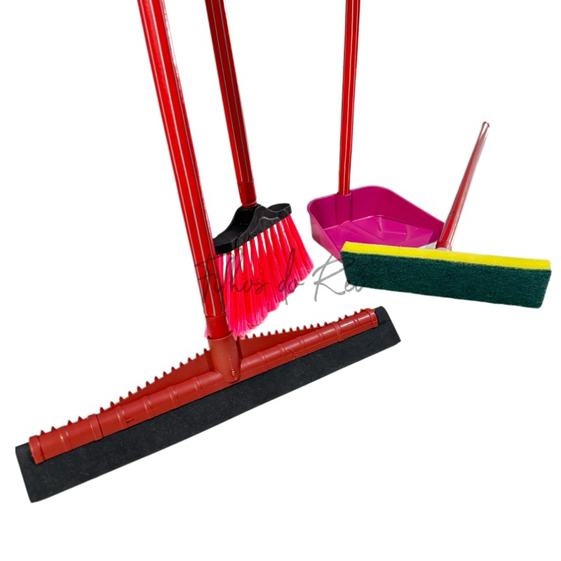 kit Vassoura, Rodo Grande Duplo, Pa de lixo e Lava Azulejo