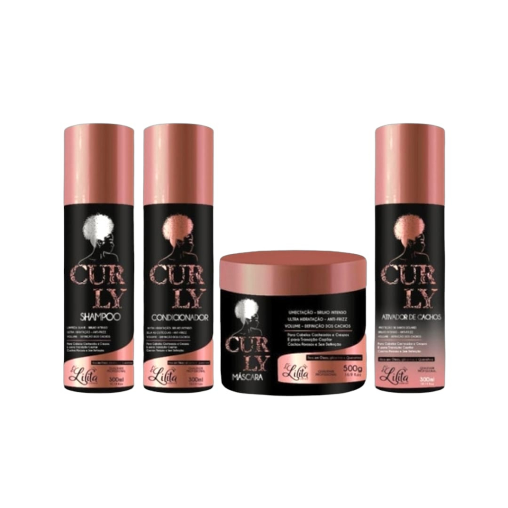 Kit de Cabelo Cacheado 4 passos shampoo Condicionador Mascara e Ativador de Cachos Lilita Cosmeticos