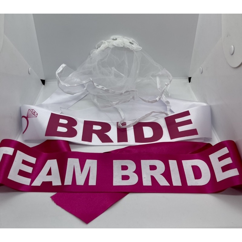 kit despedida: 1 veu + 1 faixa bride + 9 faixa team bride
