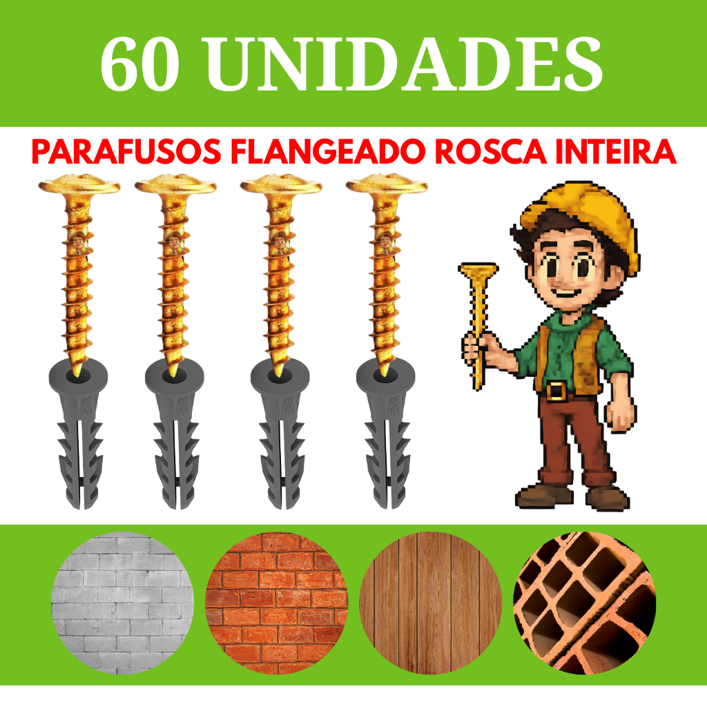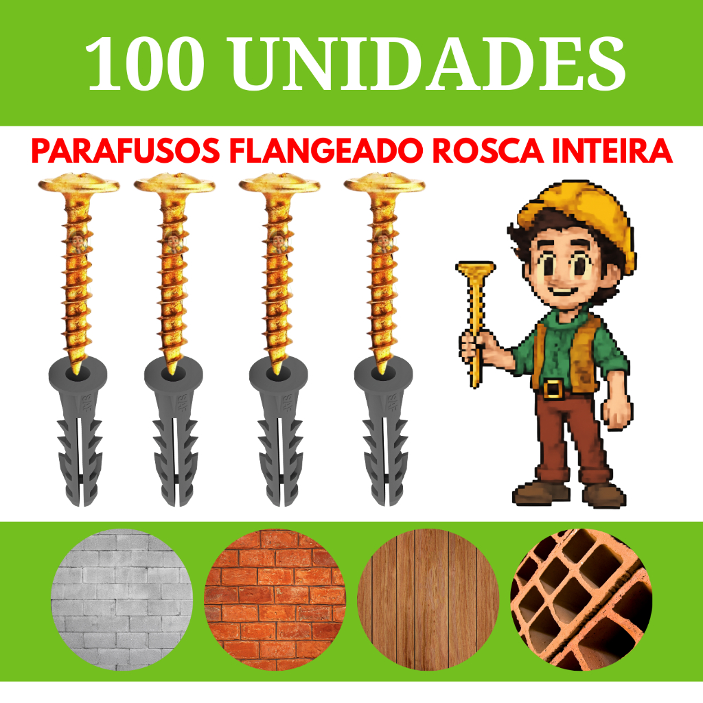 kit parafuso e bucha 6mm flangeado ideal para moveis guarda roupas suportes prateleirase gesso