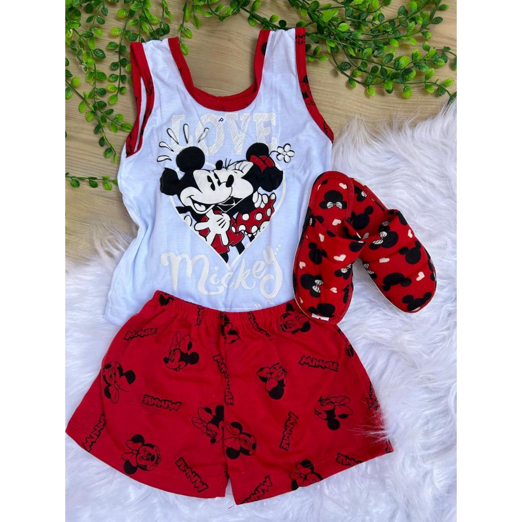 kit short doll regata infantil+pantufa verao personagens blogueira