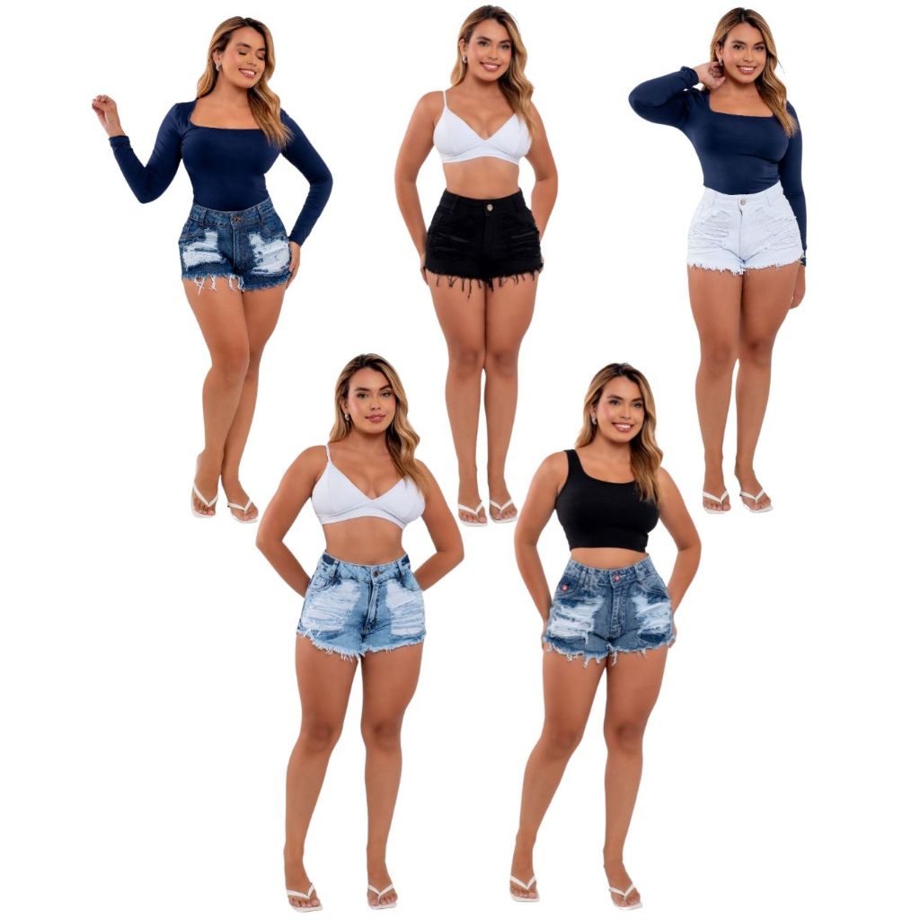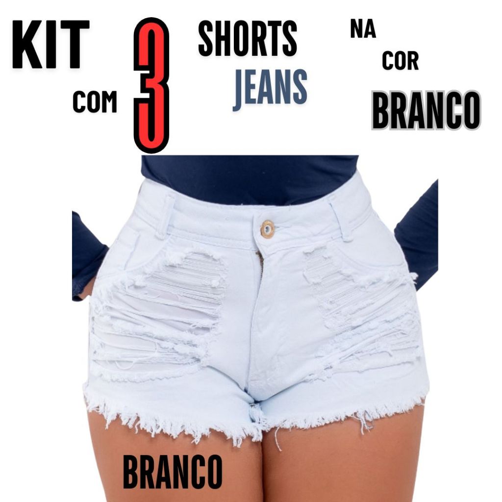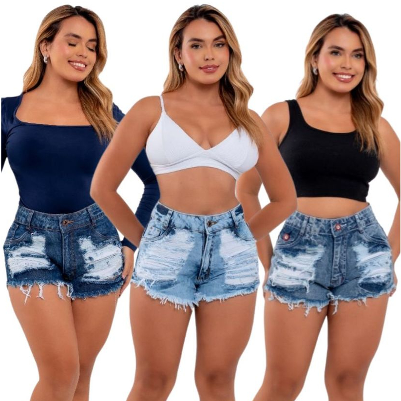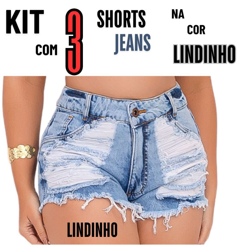 kits 3 Shorts Jeans Feminino Detonado Cintura Alta.
