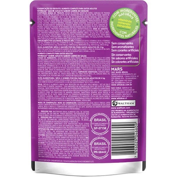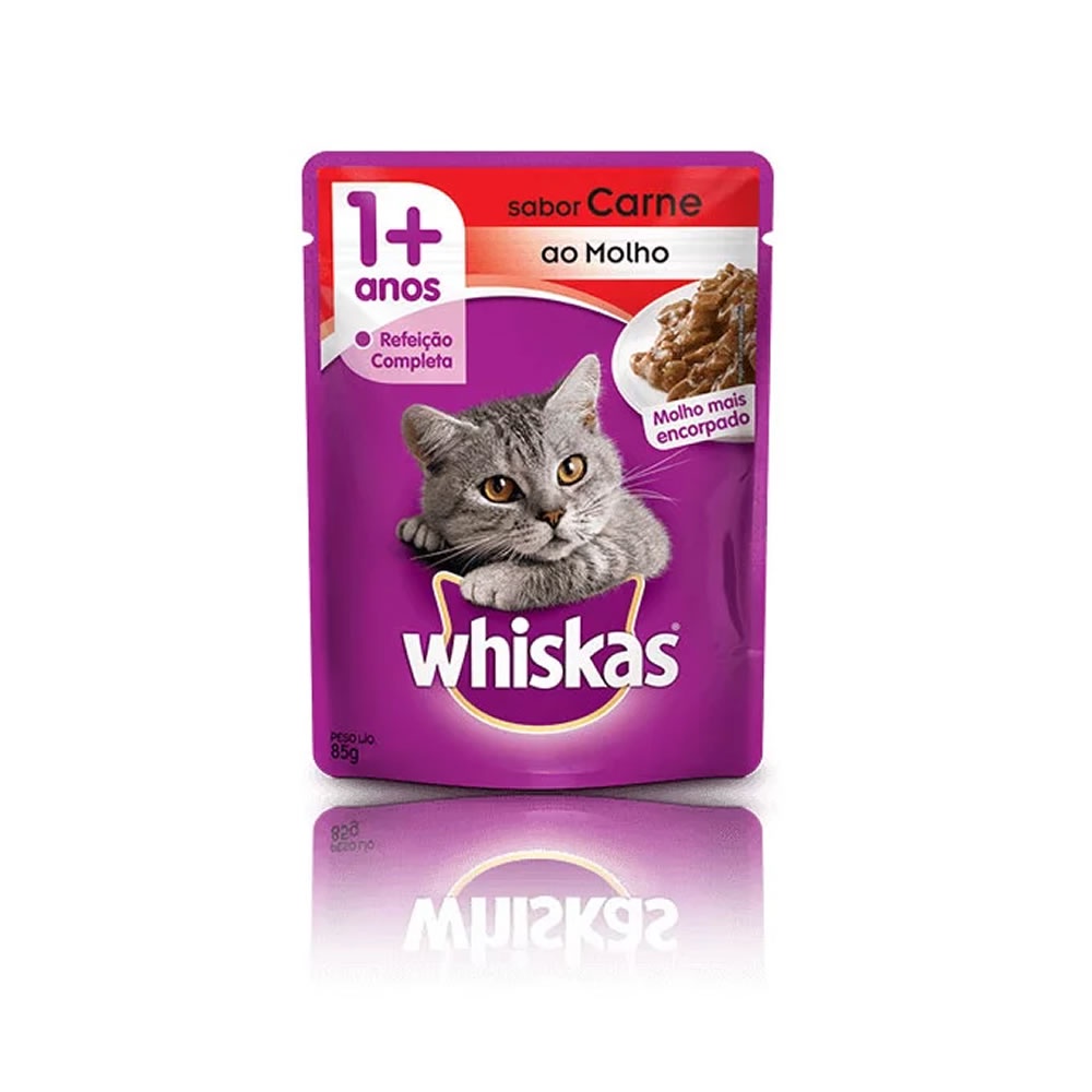 Caixa 20un Ração Úmida Whiskas Sachê Gatos Adultos Carne Ao Molho 85g