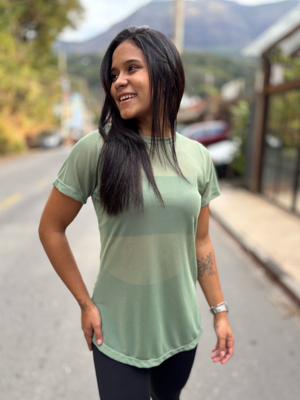 Blusa Feminina de Tule Transparente com Manga Roupa de academia Moda fitness