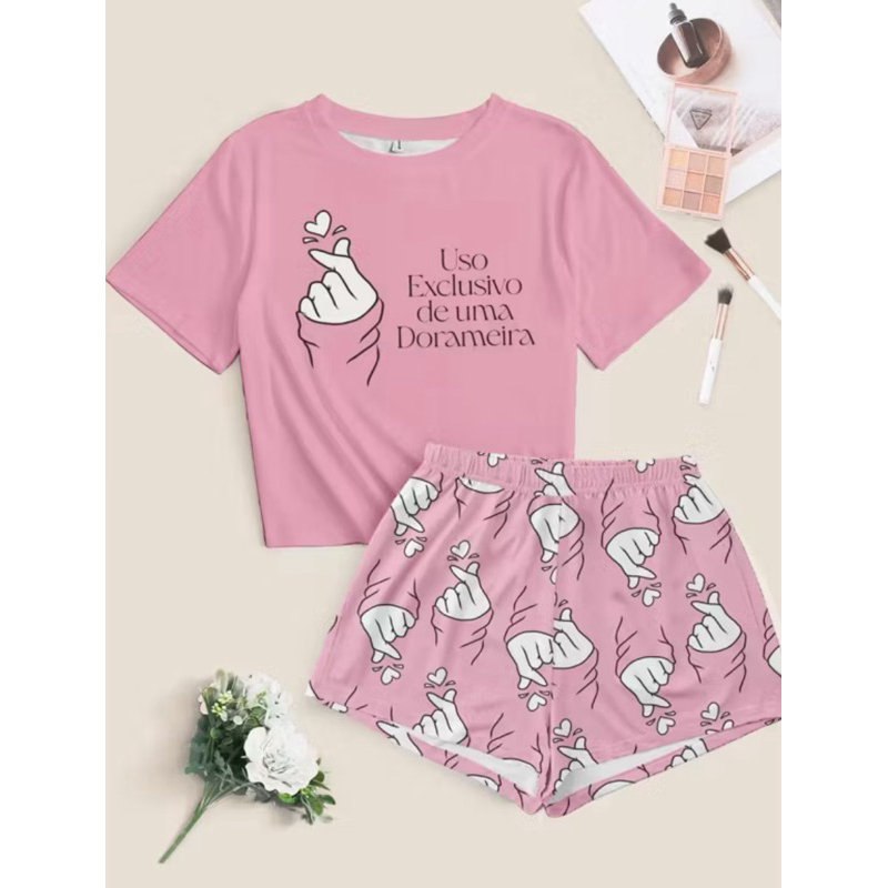 pijama feminino manga curta Margarida baby-doll personalizados moda