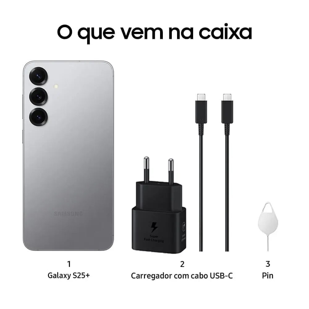 Smartphone Samsung Galaxy S25 Plus 256GB 5G - Prata, Galaxy AI, Câmera Tripla 50MP + Selfie 12MP, RAM 12GB, Tela 6.7"