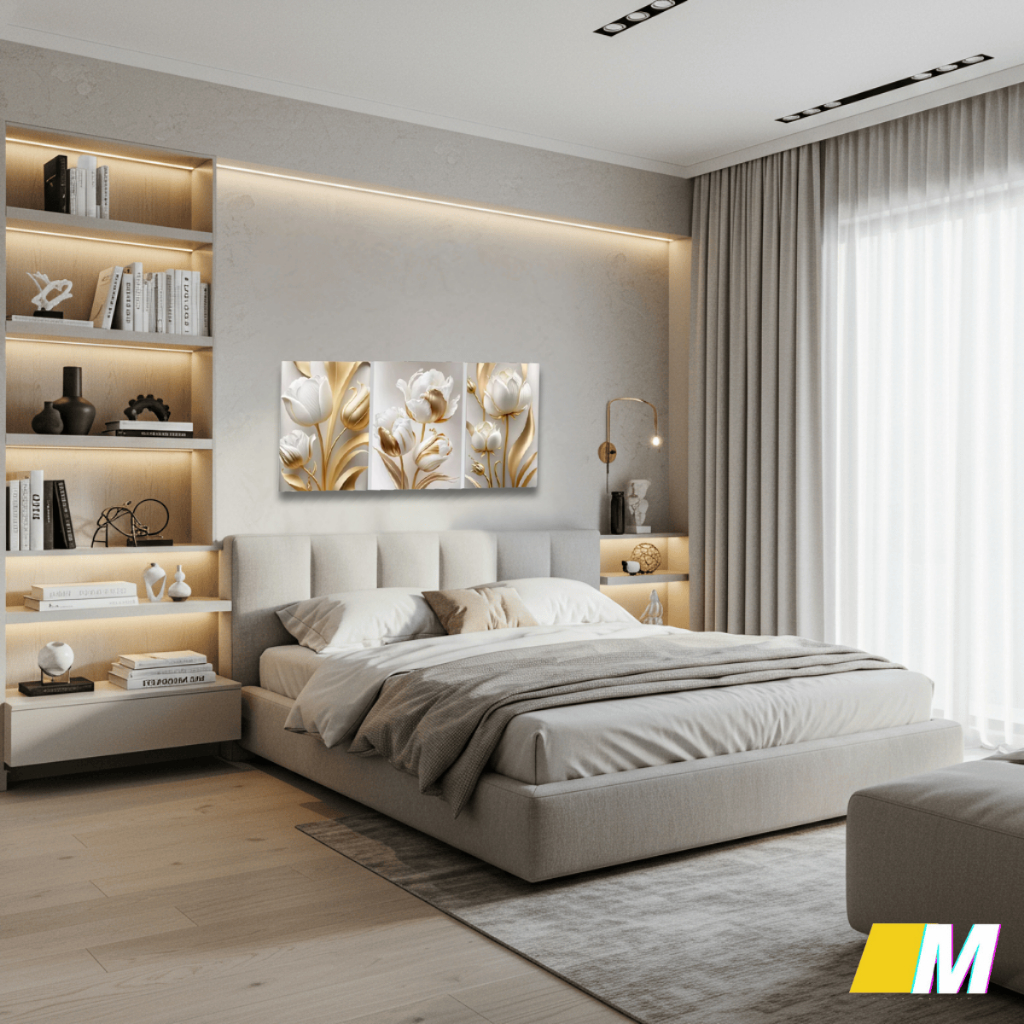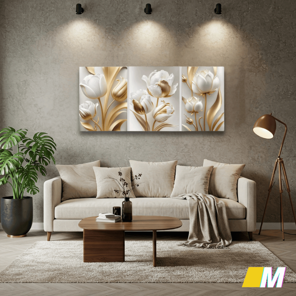Kit Quadros Decorativos Sala Quarto Flores Tulipas Brancas Gold Flor 4k
