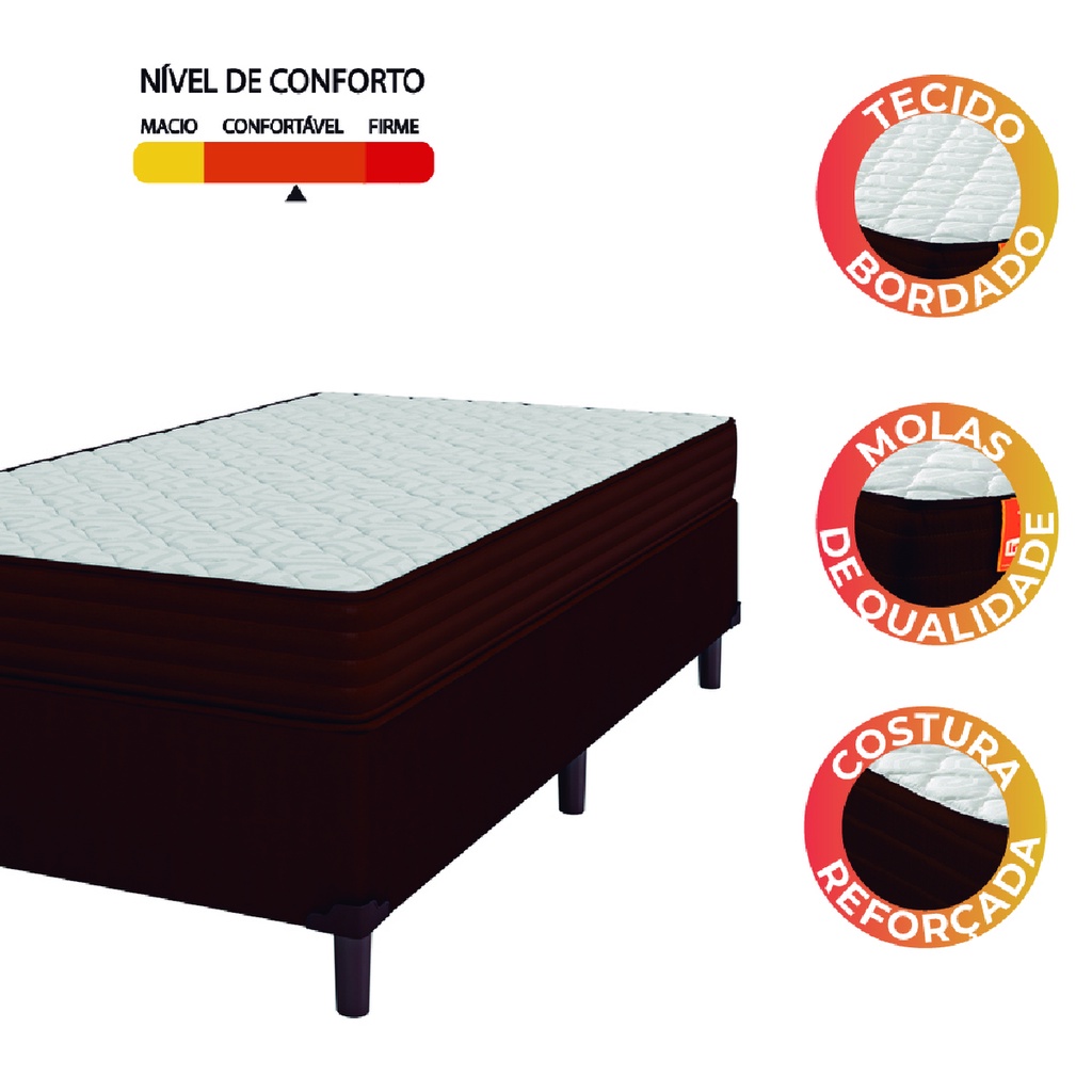 Cama Box Solteiro Colchão Molas Qatar 88x188x60cm Marrom / Branco - Suporta até 200Kg por Pessoa
