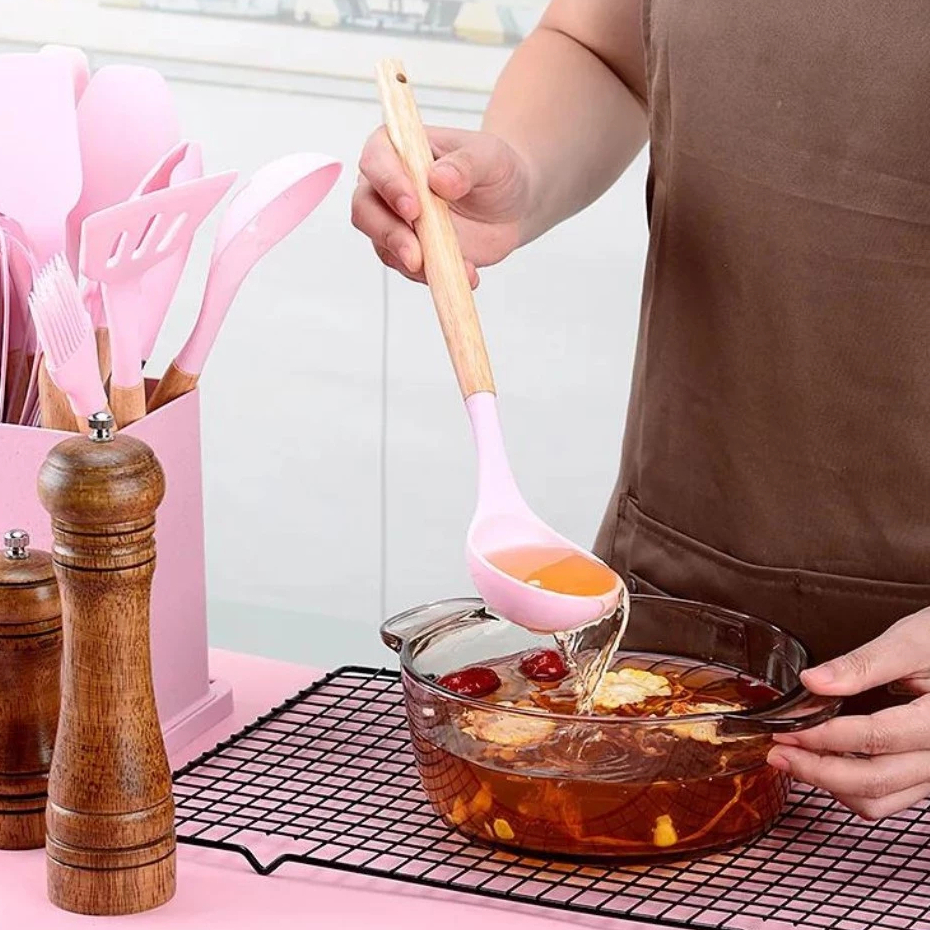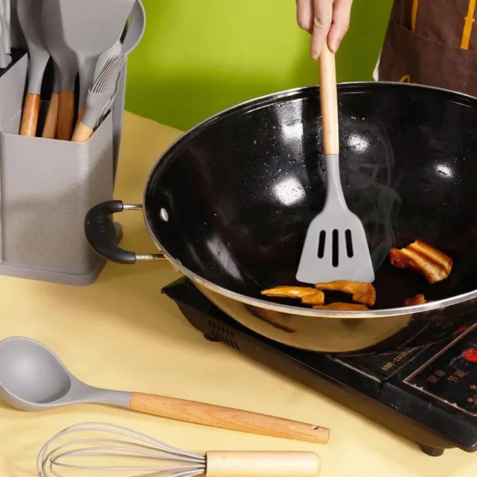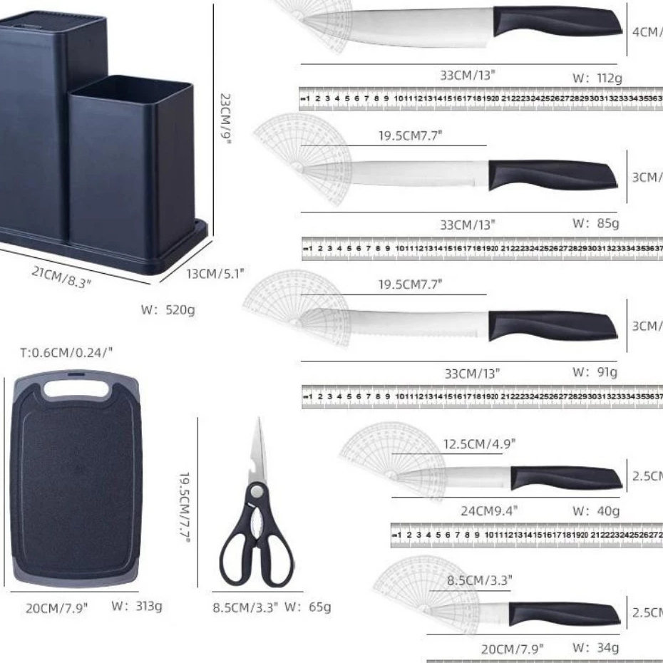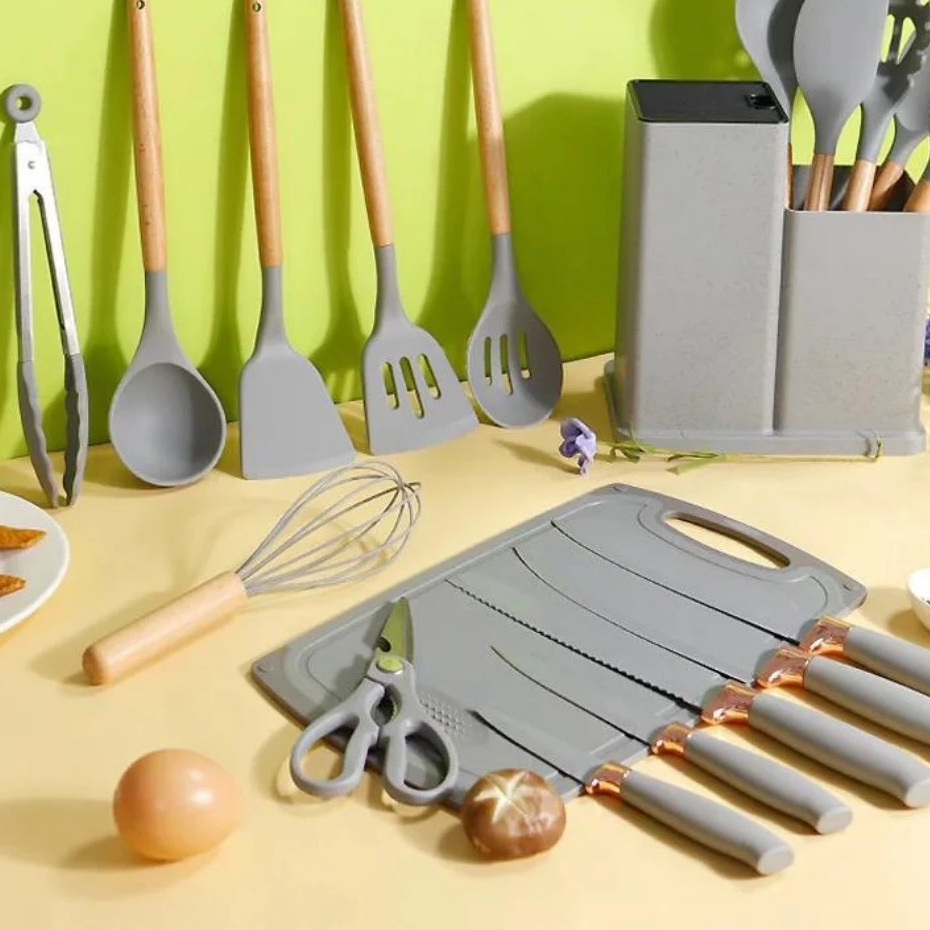 Kit Completo Jogo Utensílios de Cozinha Luxo 19 Peças Com Tábua em Silicone Espátula Faca Tesoura