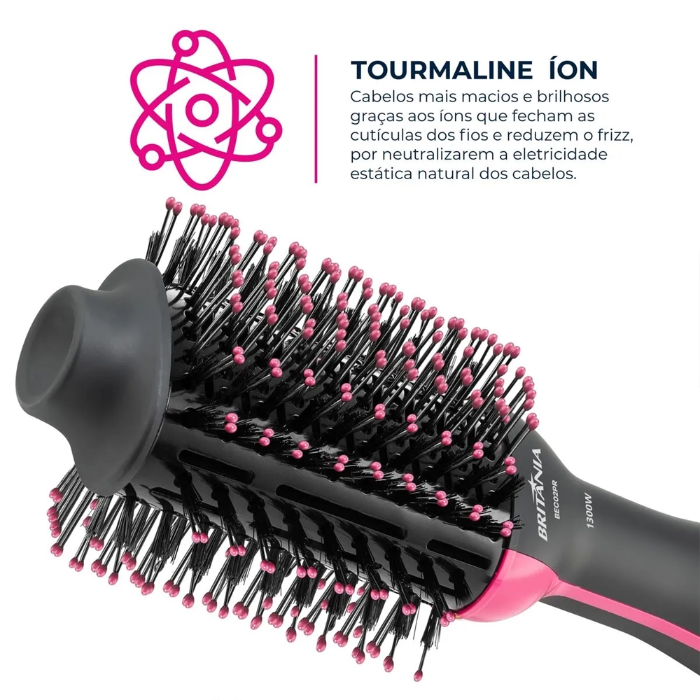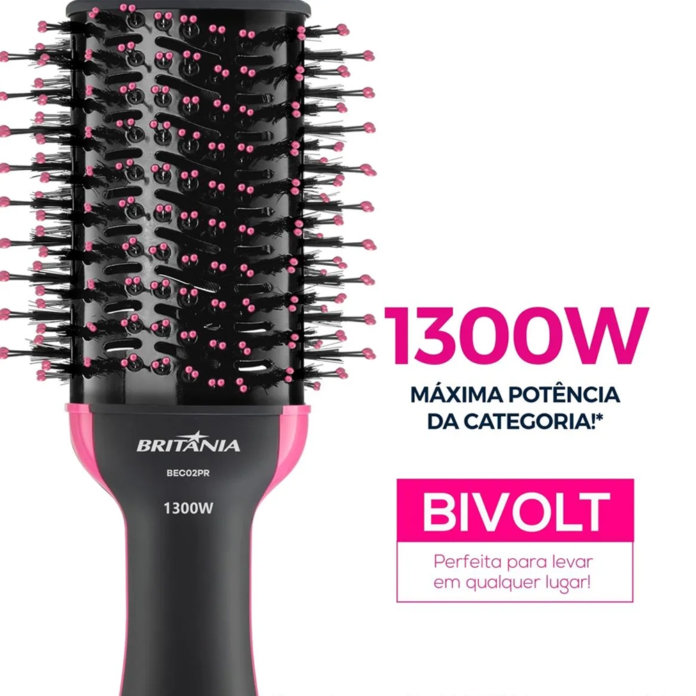 Britânia Escova Secadora Bec02pr Bivolt 4 Em 1 1300w Cor Preto E Rosa 127v 220v