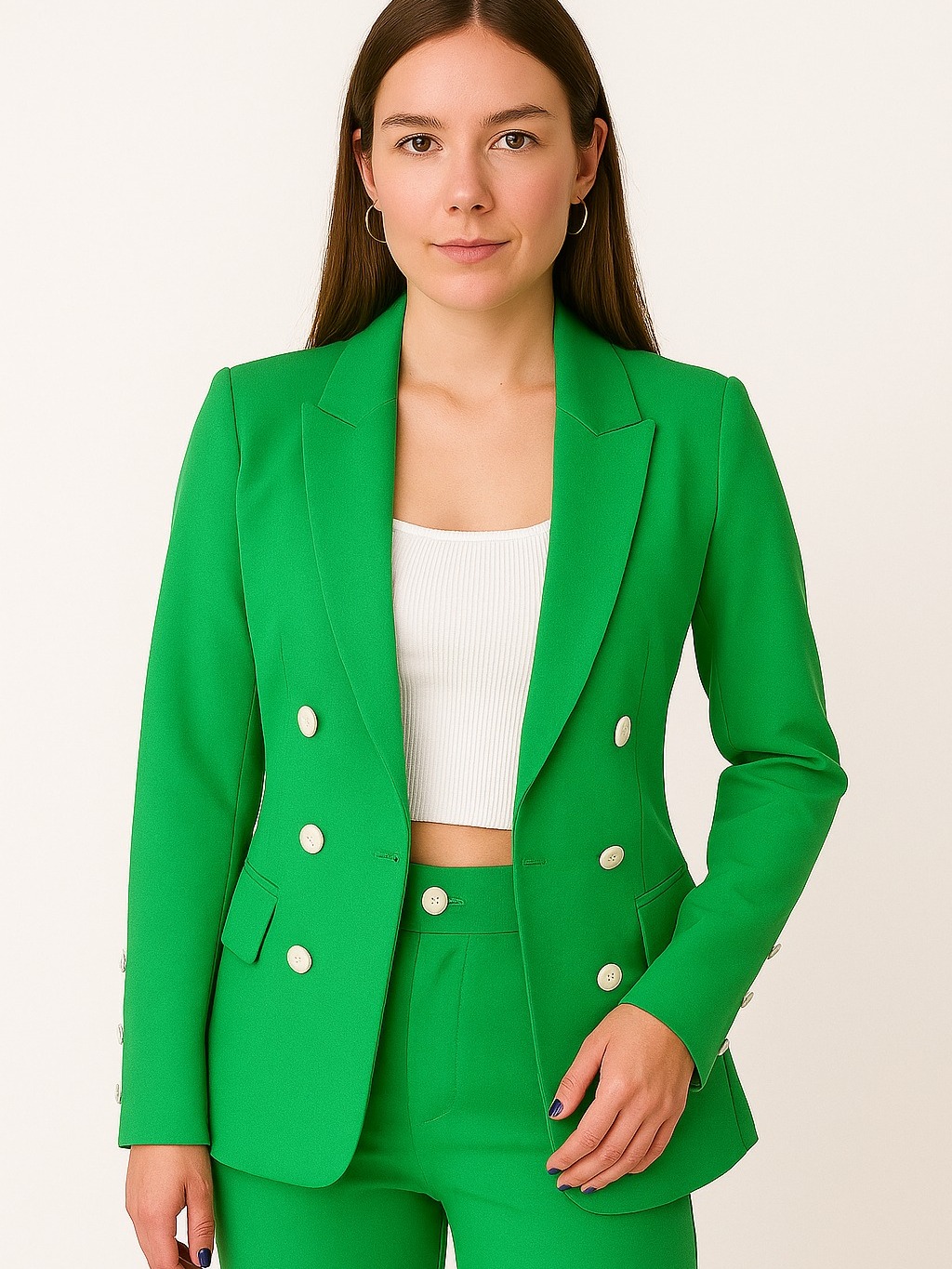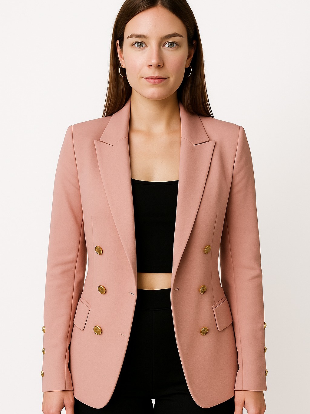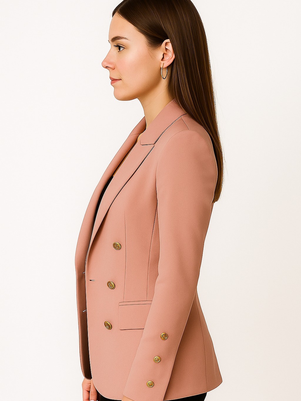 Blazer Feminino Maxi Longo Sobretudo Com Botões Dourados Estilo Elegante
