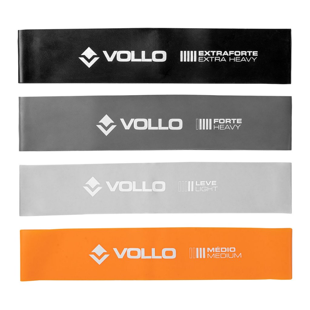 Kit 4 Faixas Elásticas Mini Bands Mais Força Muscular Níveis Fraco Médio Forte Extraforte Vollo