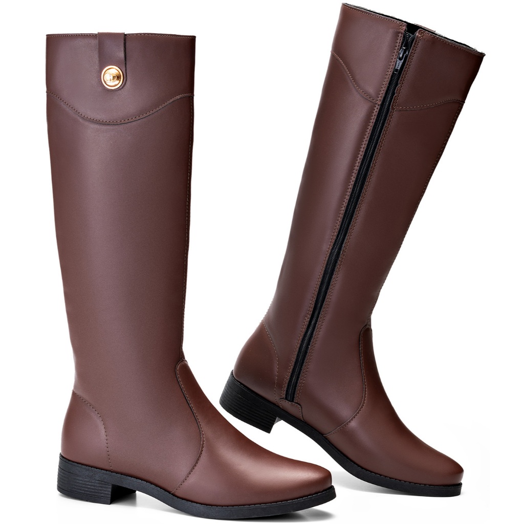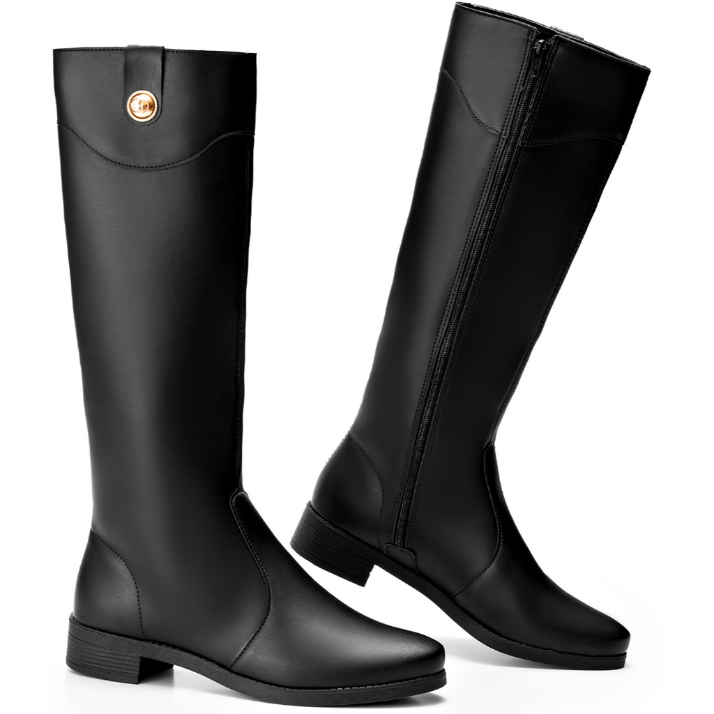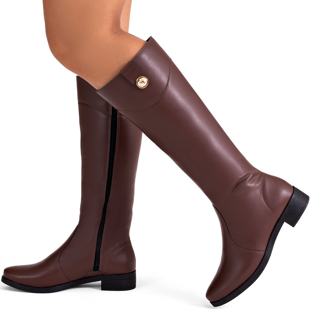 Bota Feminina Lumiss Montaria Rasteira Cano Alto Bico Redondo