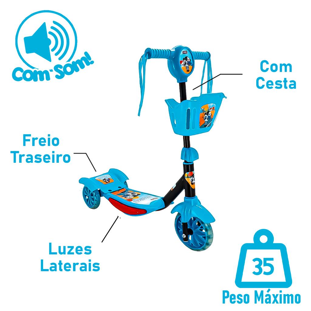 Patinete Infantil Musical Panda 3 Rodas Luzes E Cestinha - Zippy