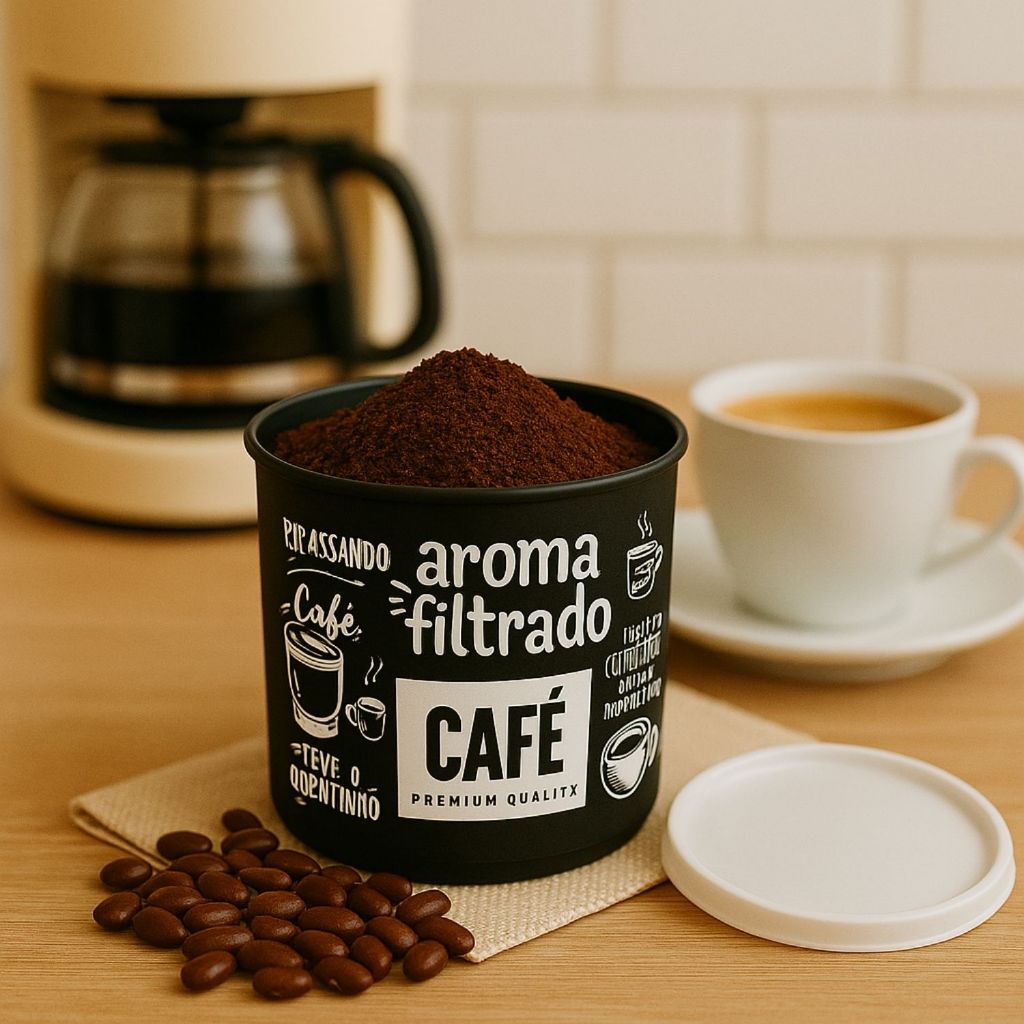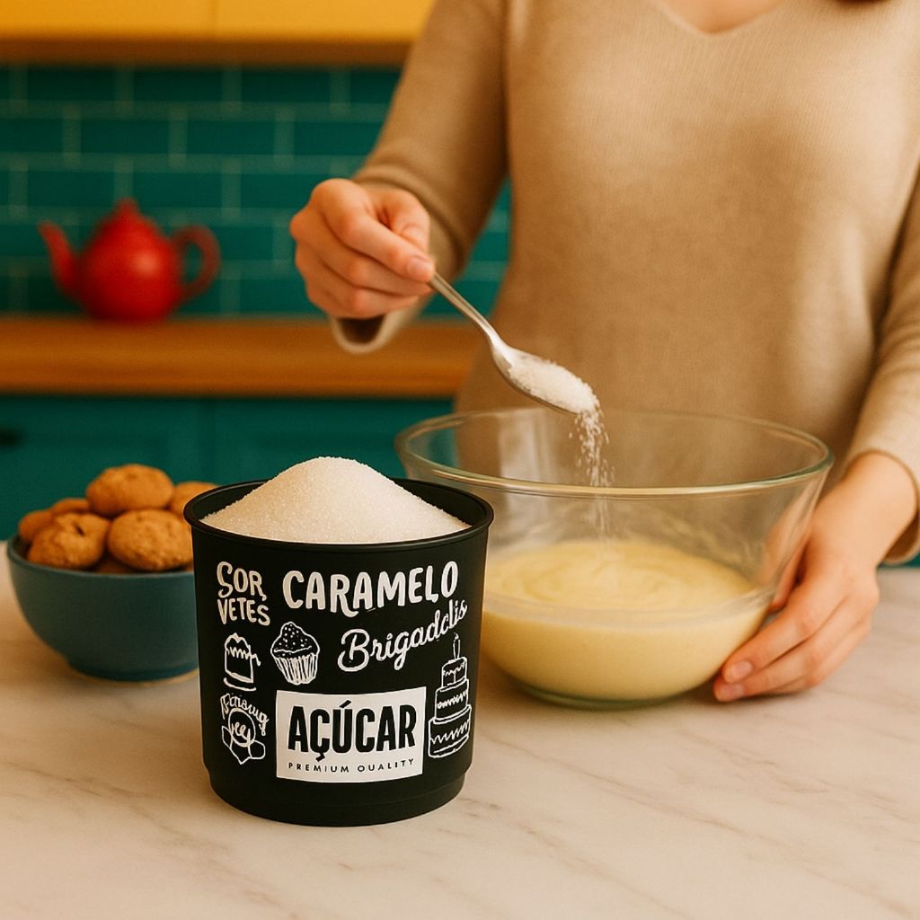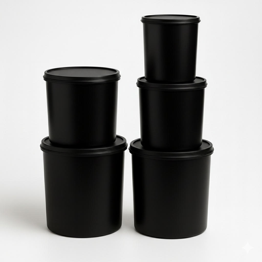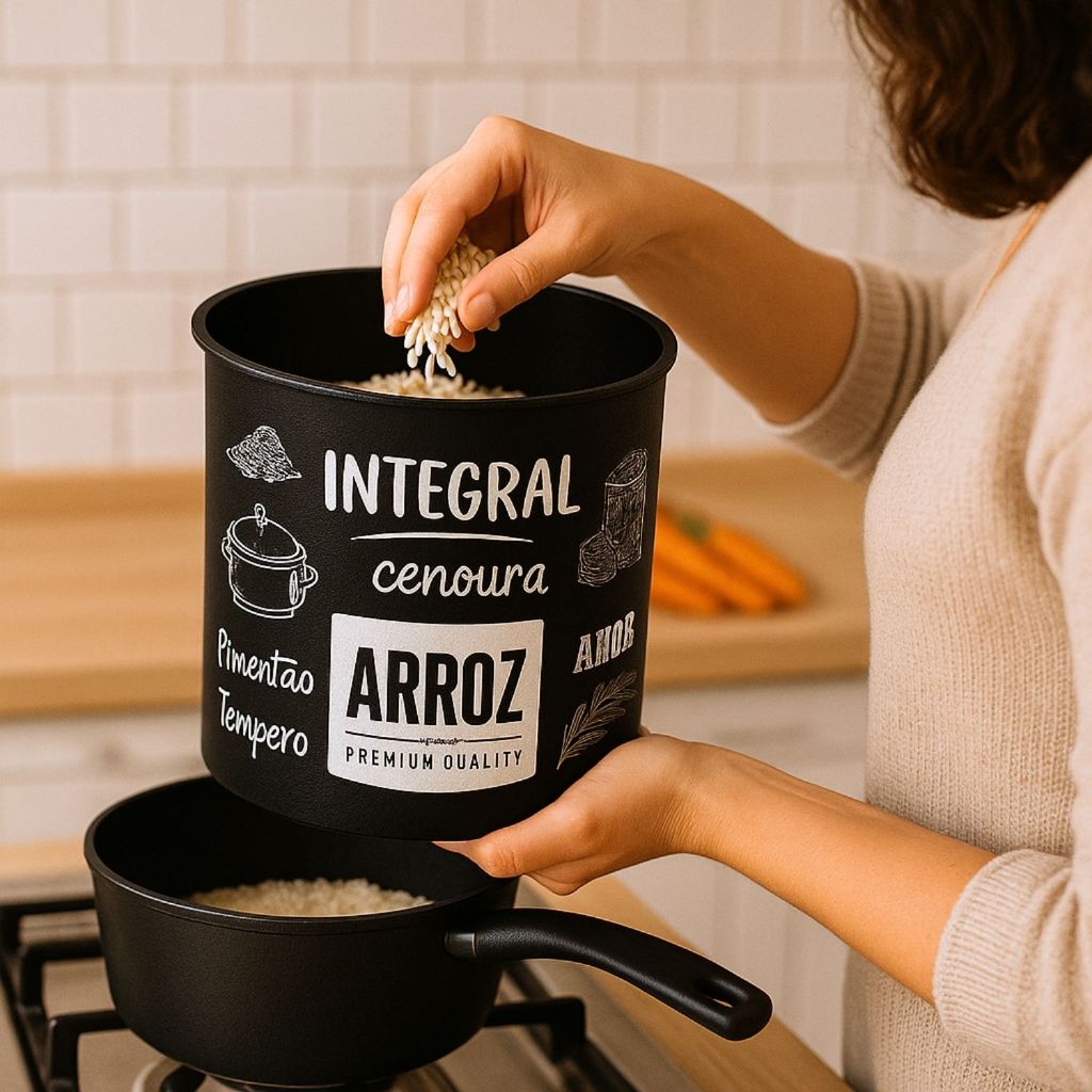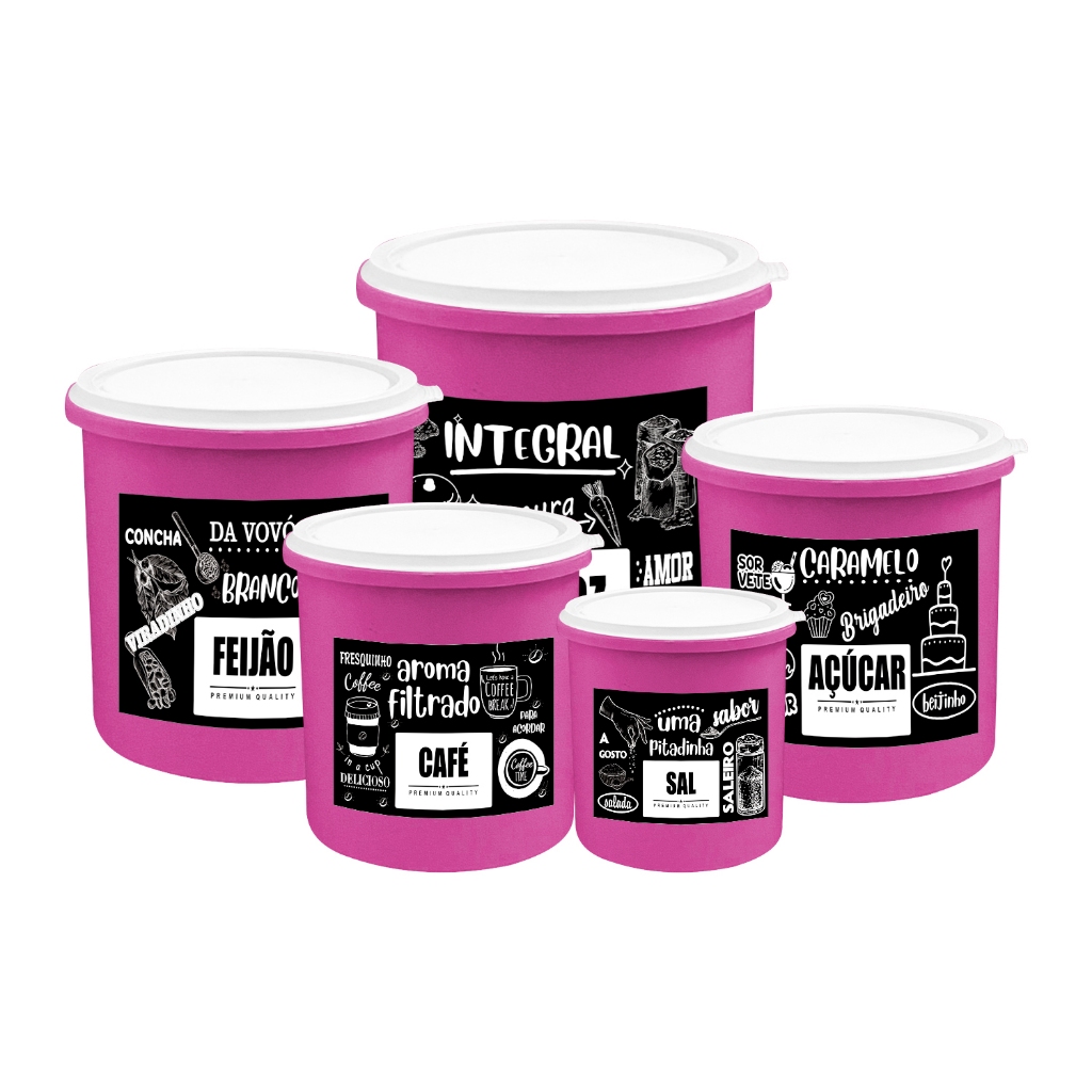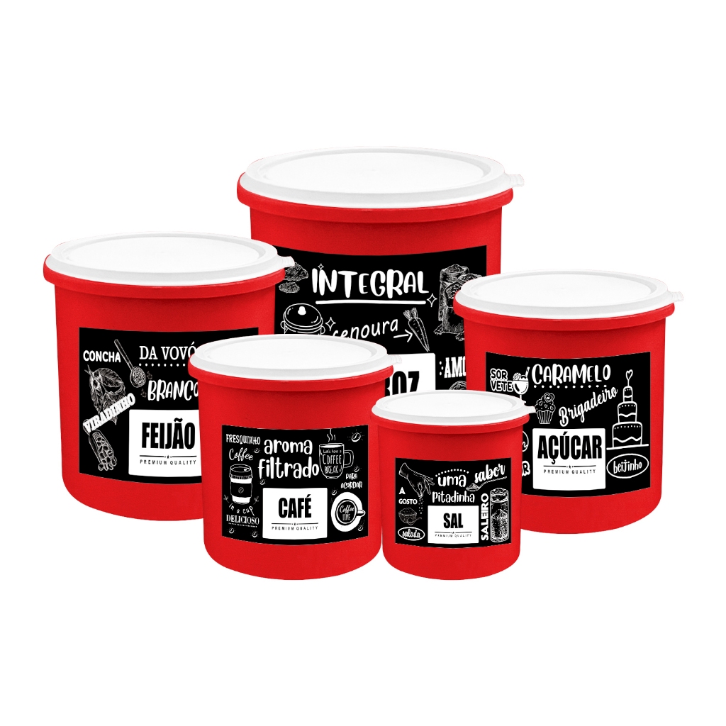 Kit 5 Potes de Mantimentos Plástico Preto PB Frases
