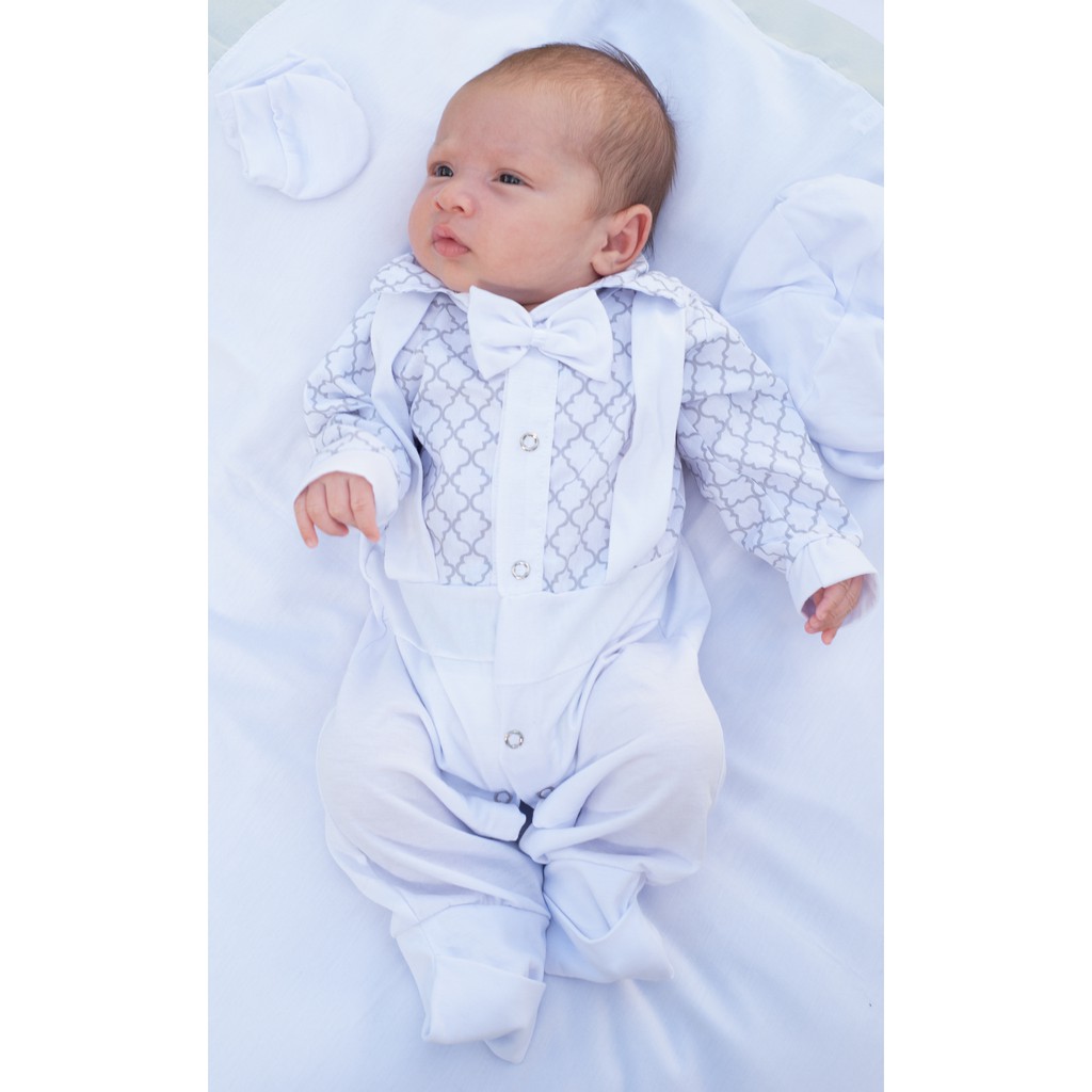Saída Maternidade Menino Azul Miguel Suspensório 04 Peças Roupa de Bebê Menino
