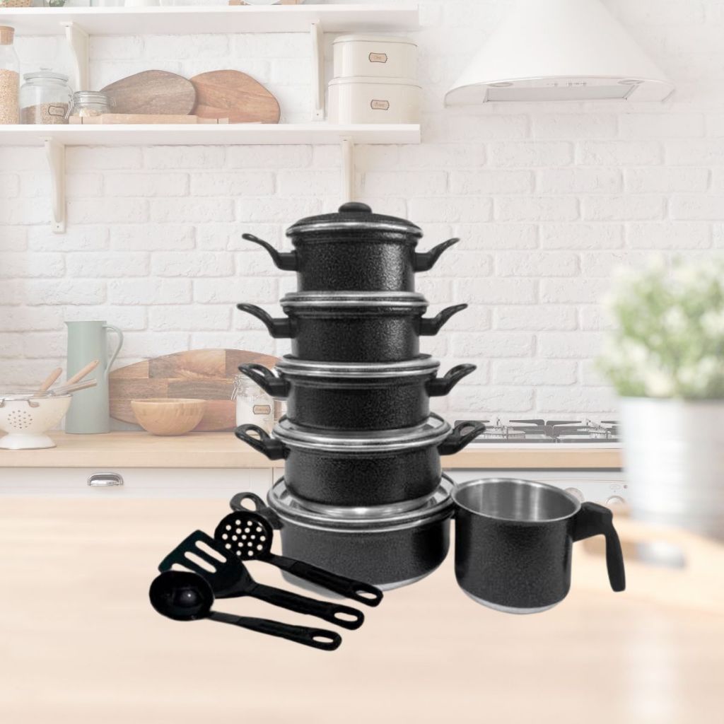 Jogo de Panelas 5 Peças + Leiteira e Jogo de talheres