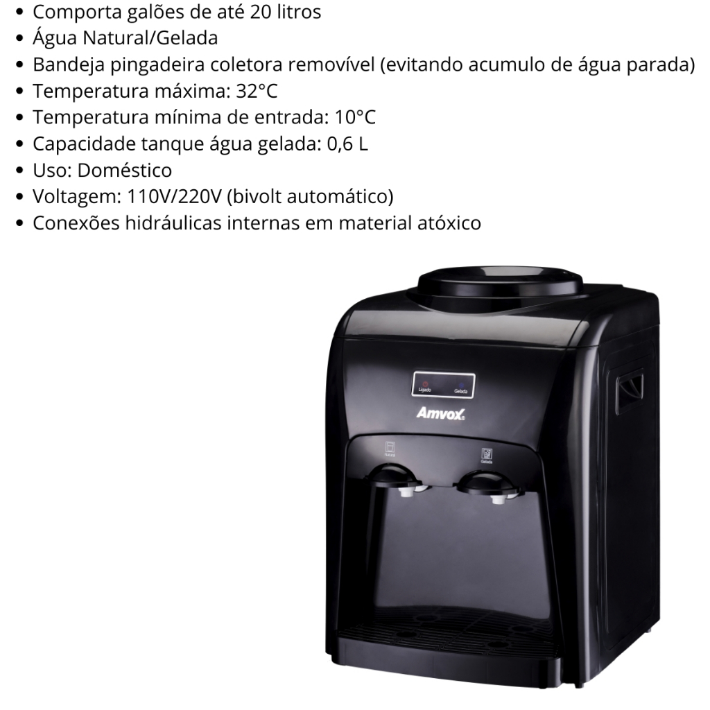 Bebedouro eletrônico Amvox ABB 240 black água gelada e natural bivolt galão até 20 litros