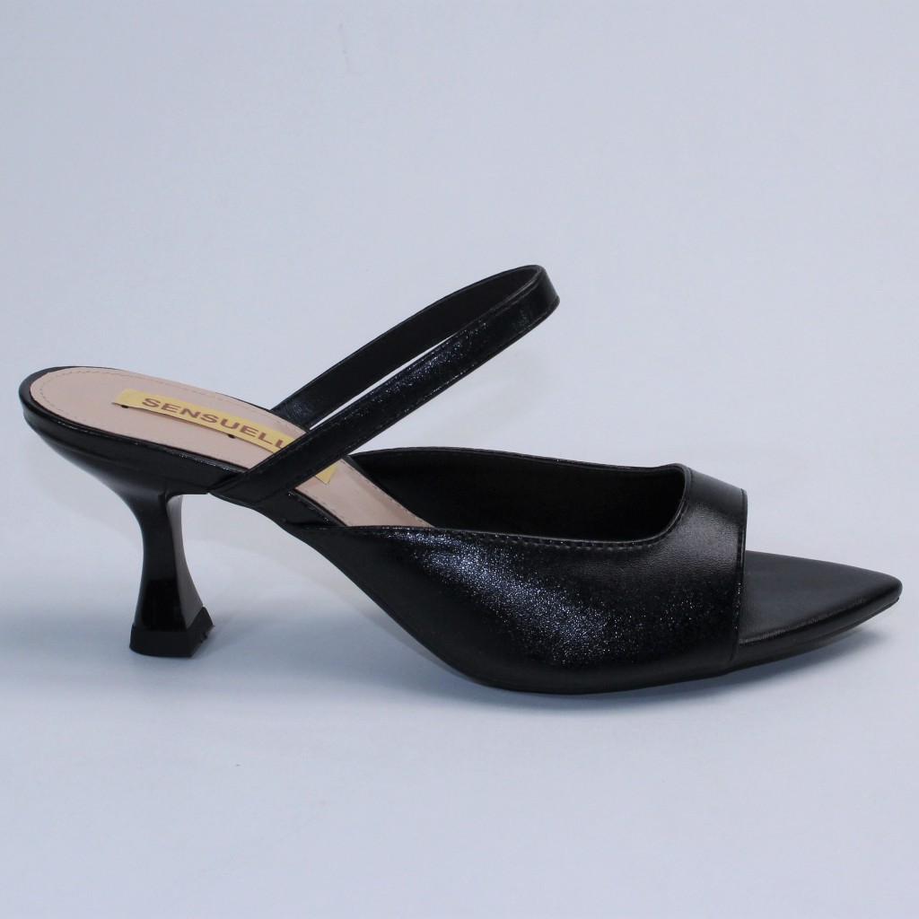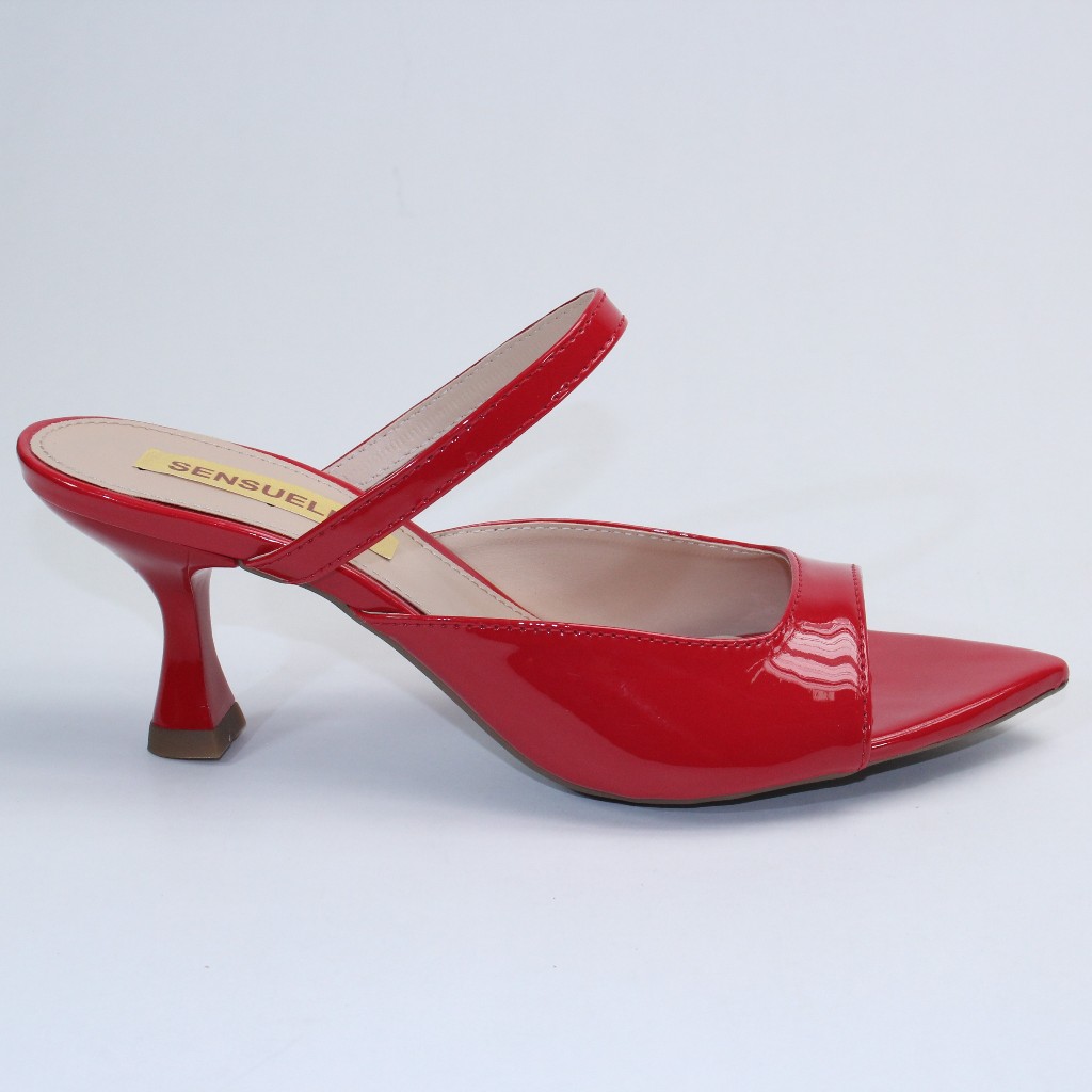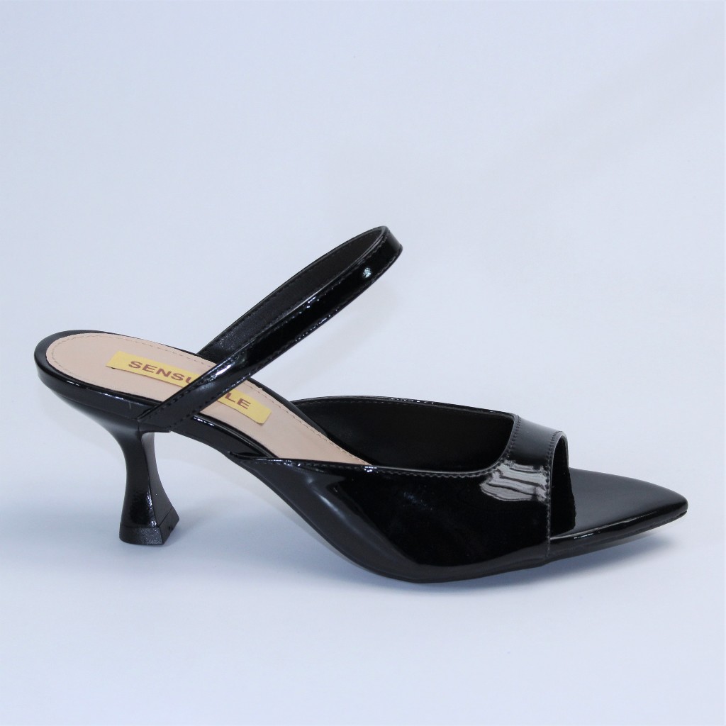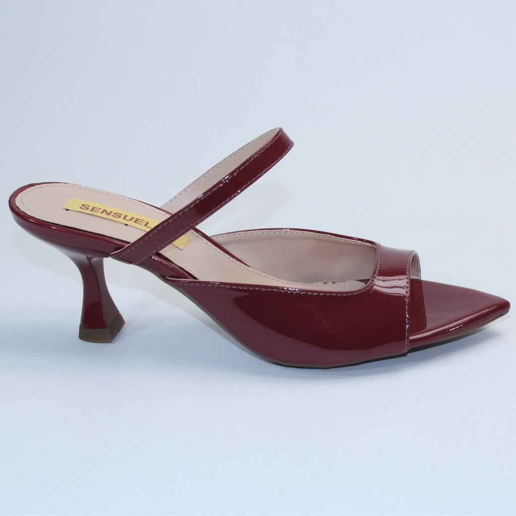 Tamanco Mule Feminino Sandália Bico Fino Folha Salto Medio Taça Tira Verniz Confortável Leve Macia