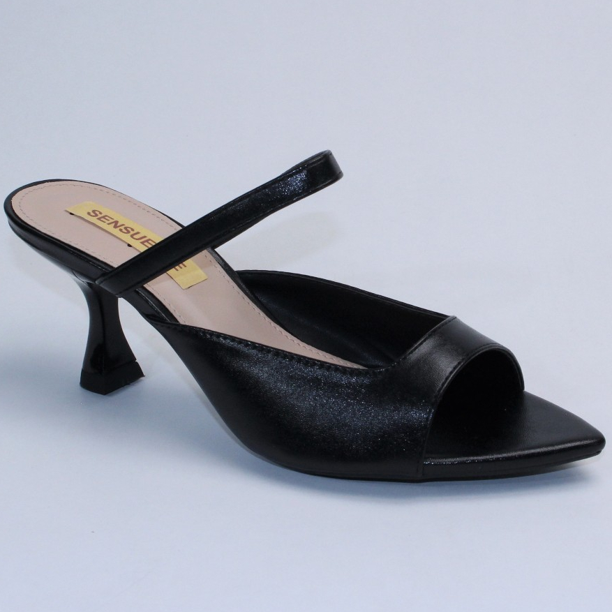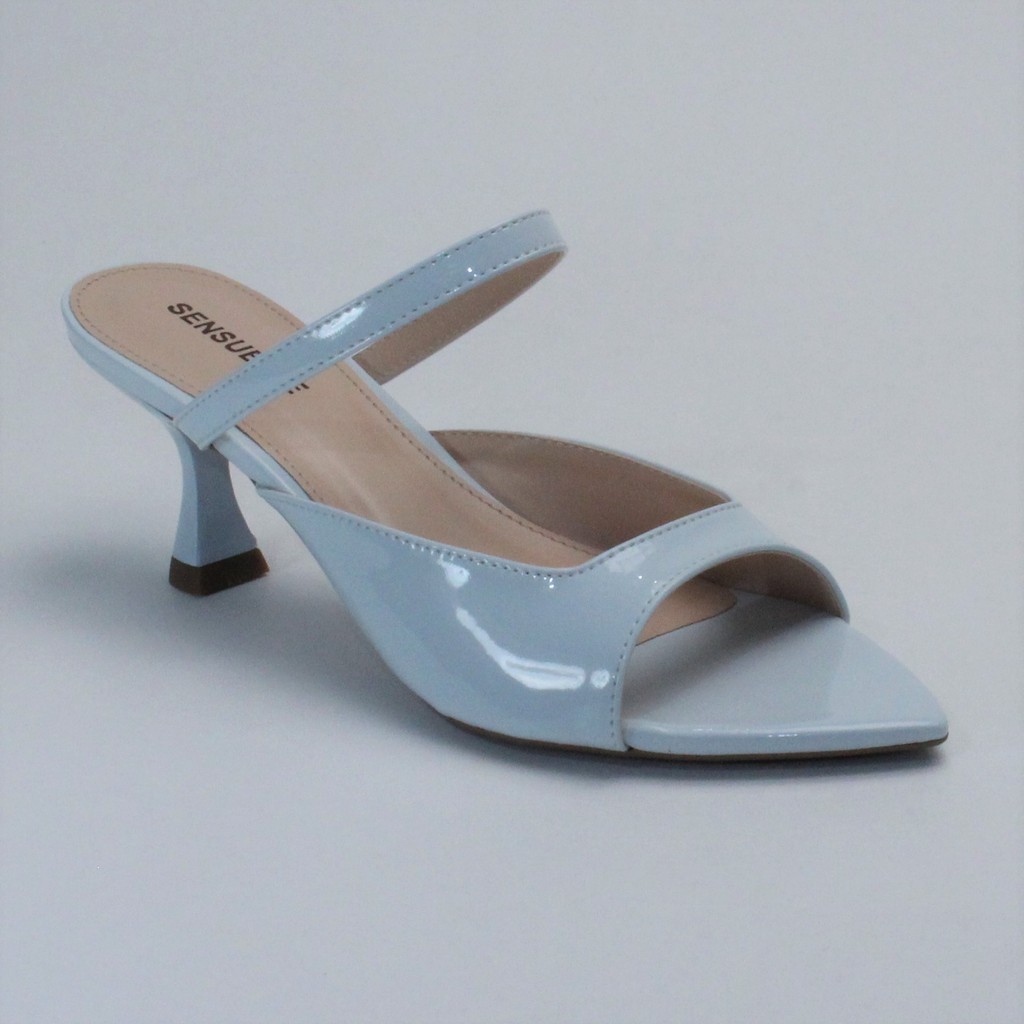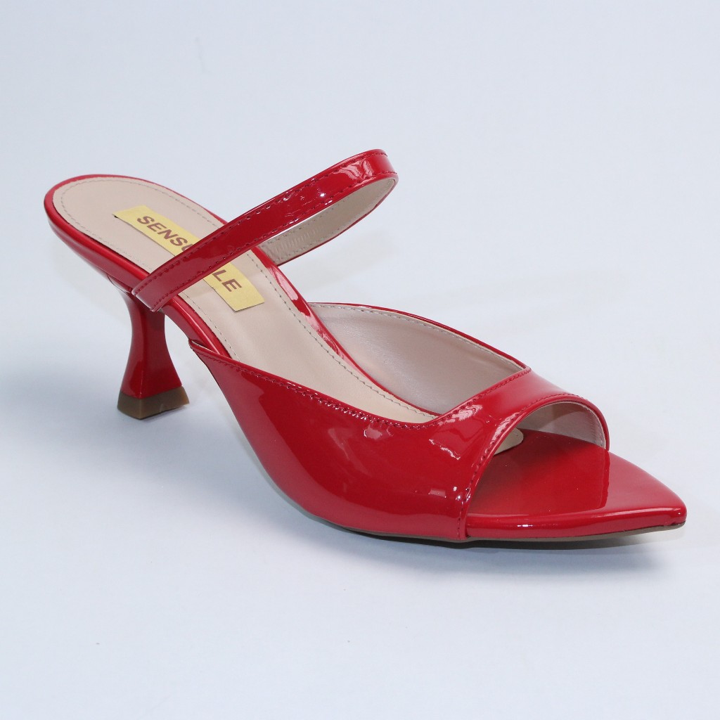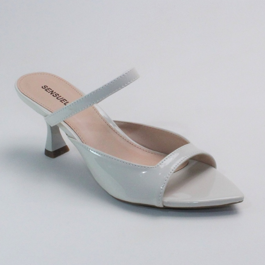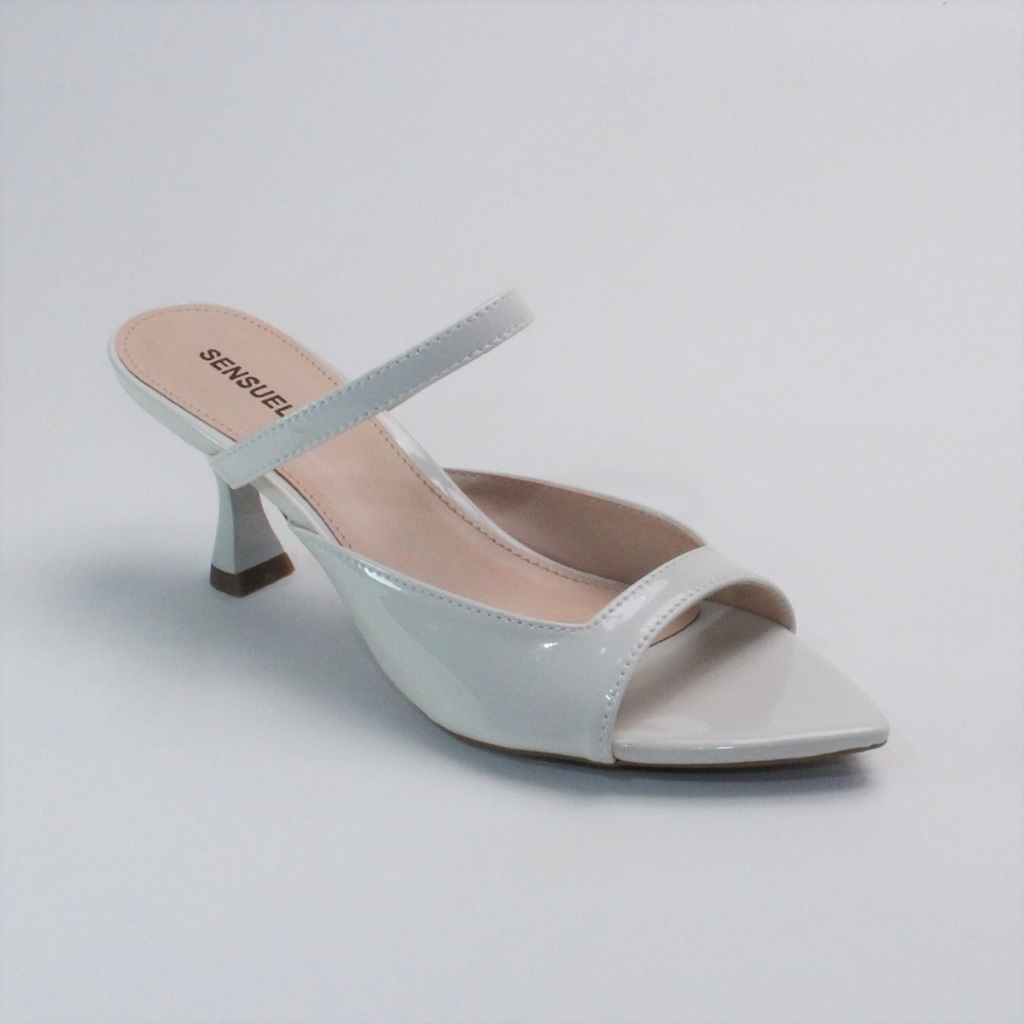 Tamanco Mule Feminino Sandália Bico Fino Folha Salto Medio Taça Tira Verniz Confortável Leve Macia