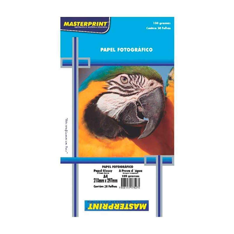 Kit 200 Folhas Papel Fotografico A4 Glossy 180g Masterprint Cor Branco