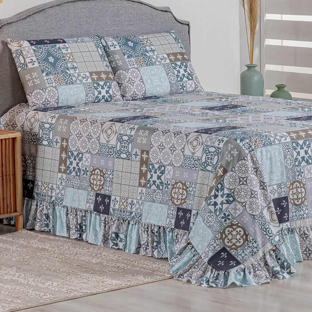 Kit Colcha Cobre Leito Queen 400 Fios Toque Macio 3 Peças com Porta Travesseiro