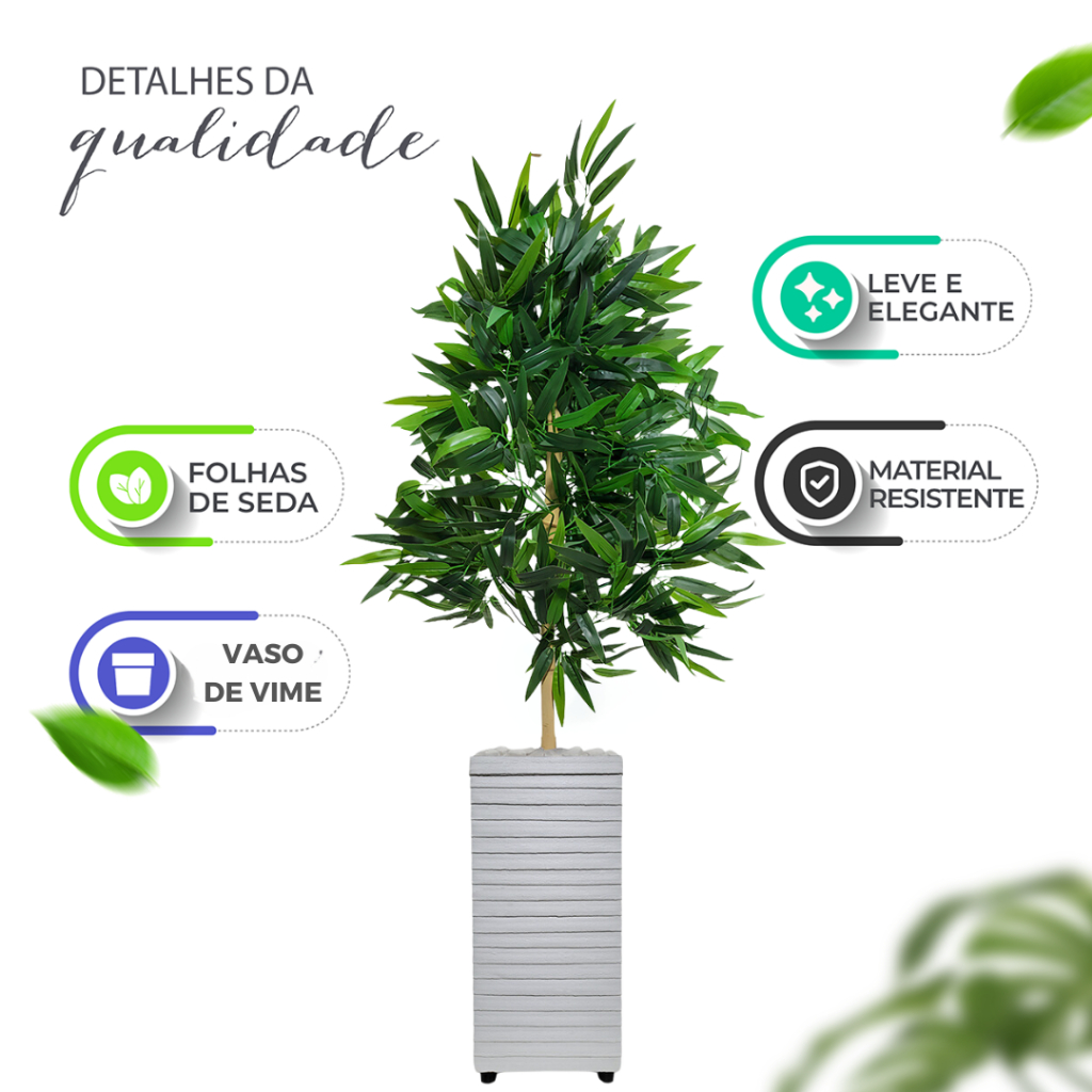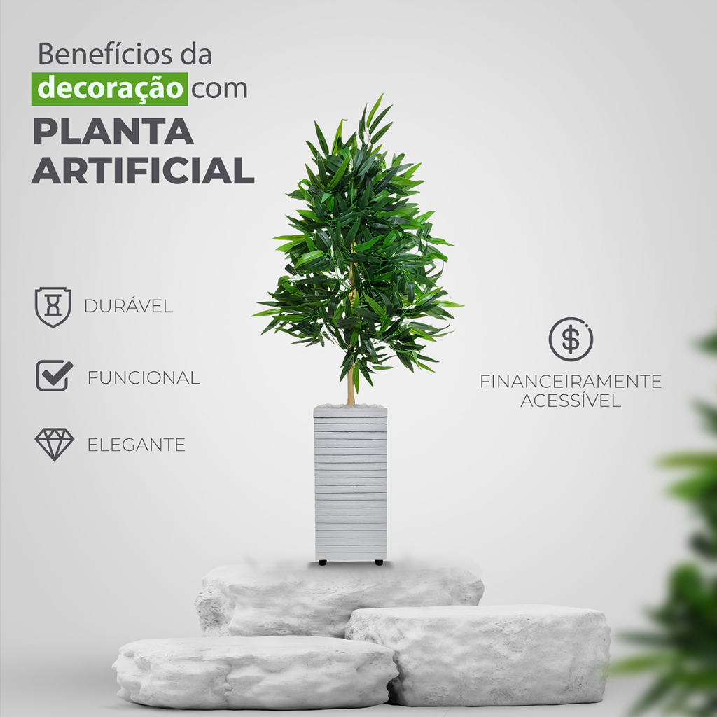 Planta Bambu Da Sorte Artificial Grande Com Vaso Decorativo Enfeite Sala
