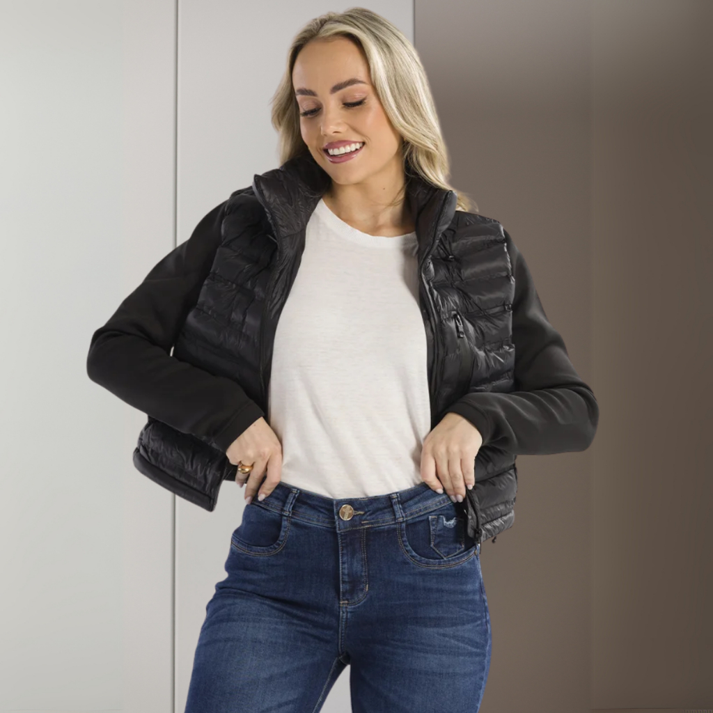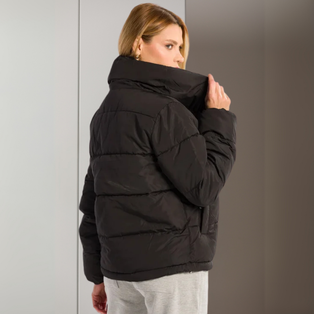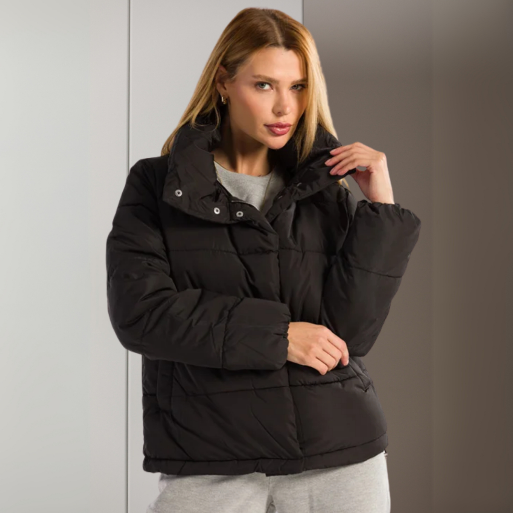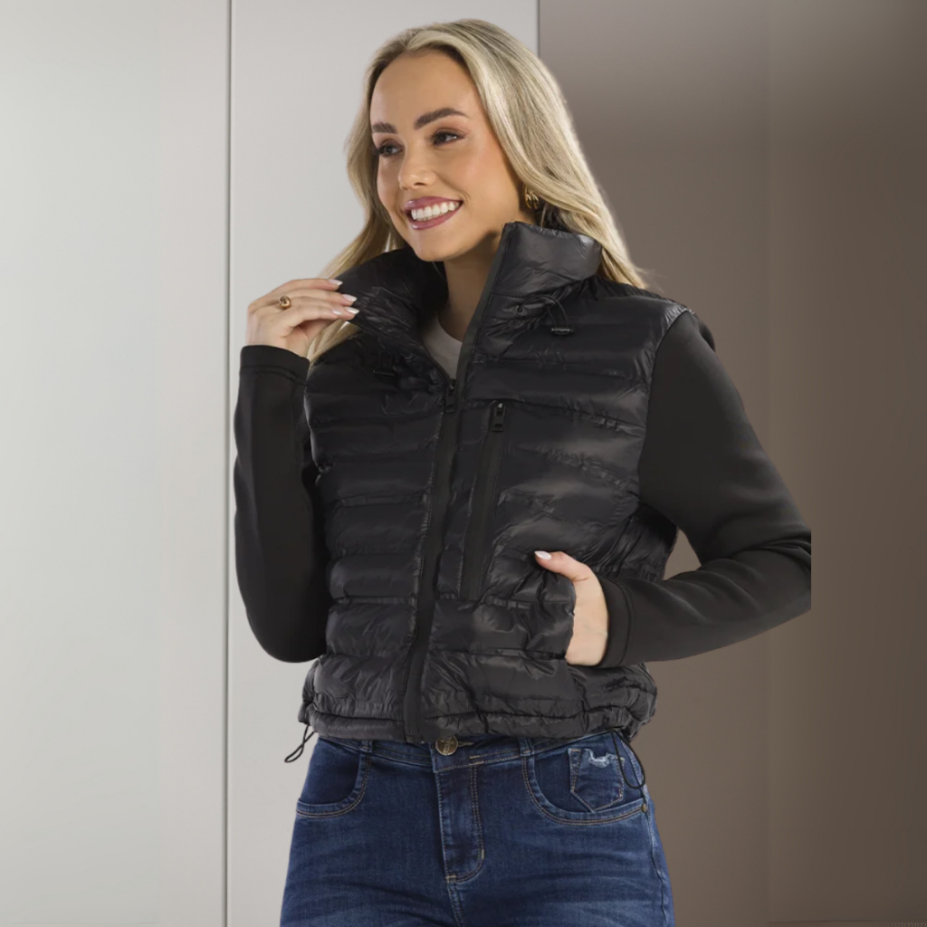 Jaqueta Feminina Bobojaco Puffer com Capuz Removível Nylon Repele Líquido Manga Longa Bolsos