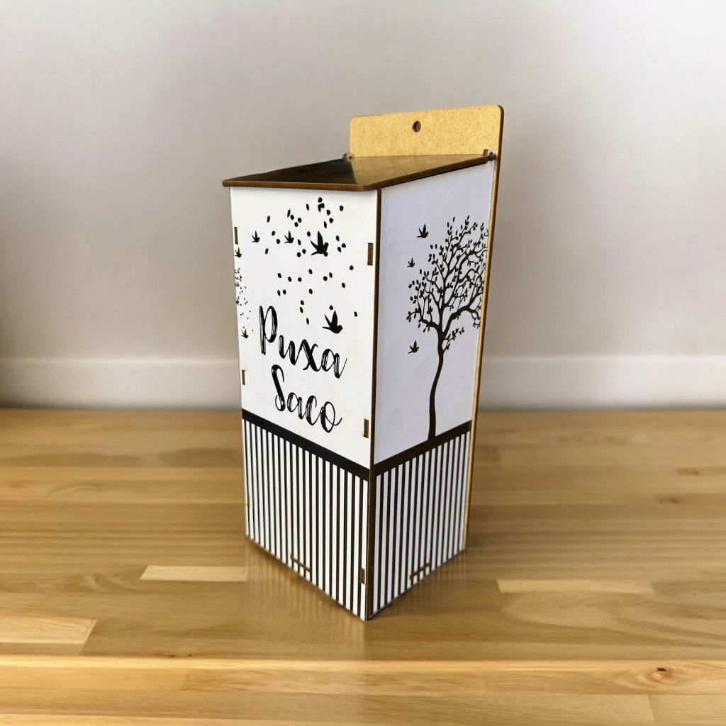 Puxa Saco Parede Casa Mdf Organizador de Sacolas Casinha Madeira
