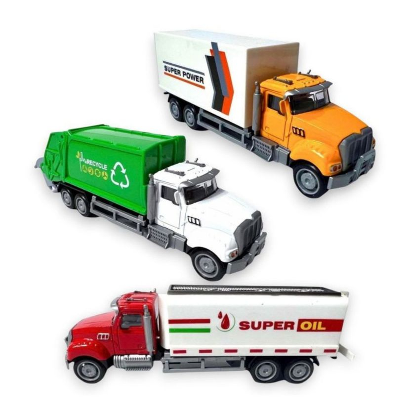 Brinquedo Caminhão Miniatura Coletor de Lixo Tanque Baú Bombeiros Cabine de Ferro Coleção Rara Pneu de Borracha
