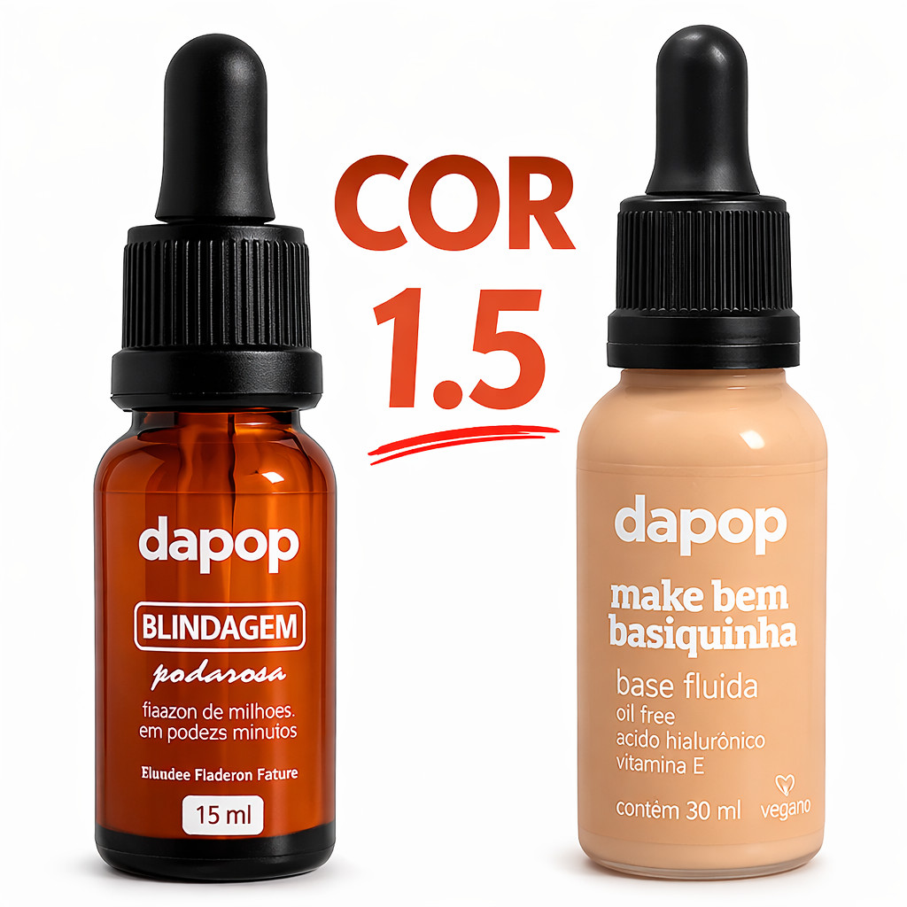 Kit Dapop Base Fluída Vegana + Blindagem Poderosa – Make Leve, Hidratada e à Prova d’Água