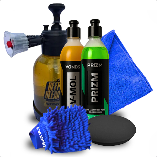 Kit de Limpeza Automotiva Vonixx Snow Foam Luva de Microfibra Vfloc Vmol Tok Final Prizm Snow Foam Flanela Aplicador