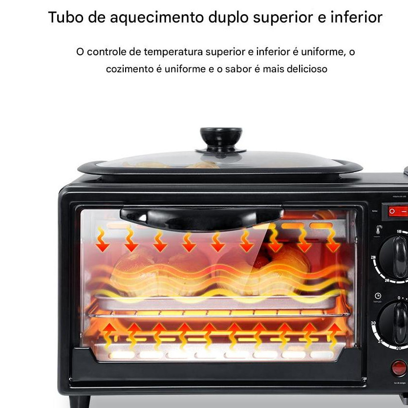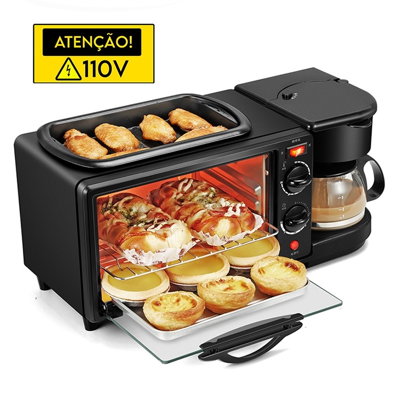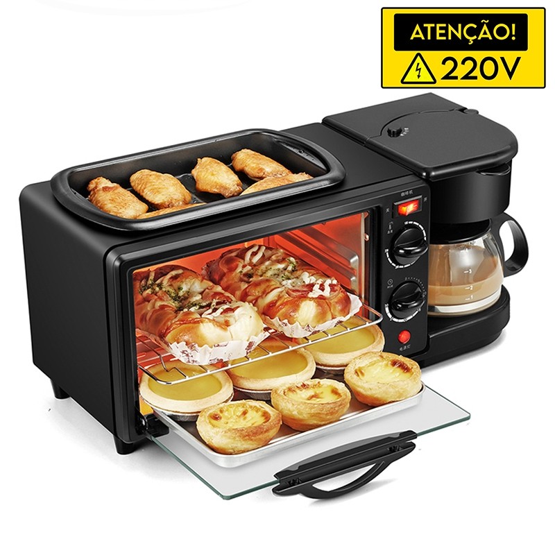 Máquina de Café da Manhã 3 em 1 Forno Cafeteira Grill 2800W Viccoli Premium