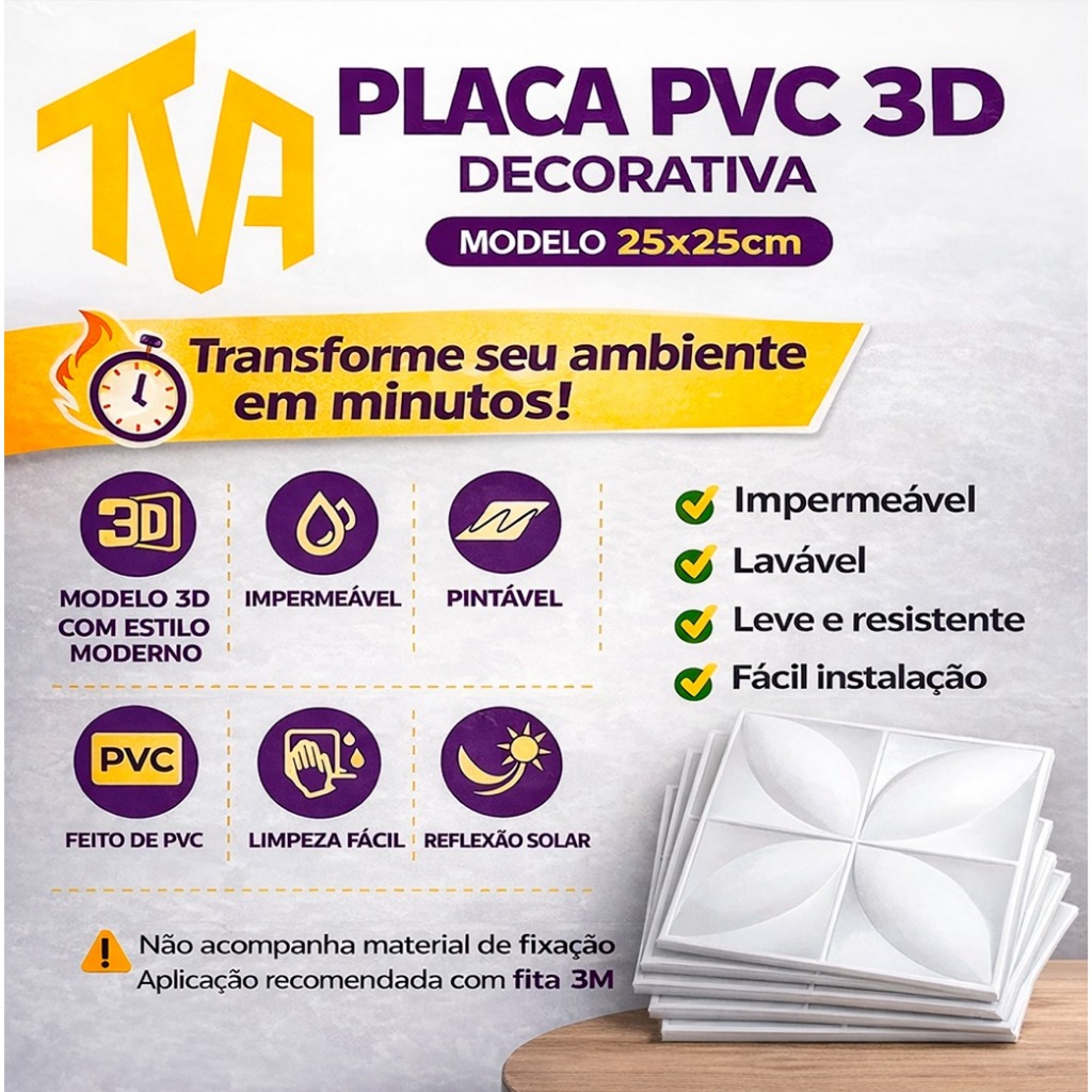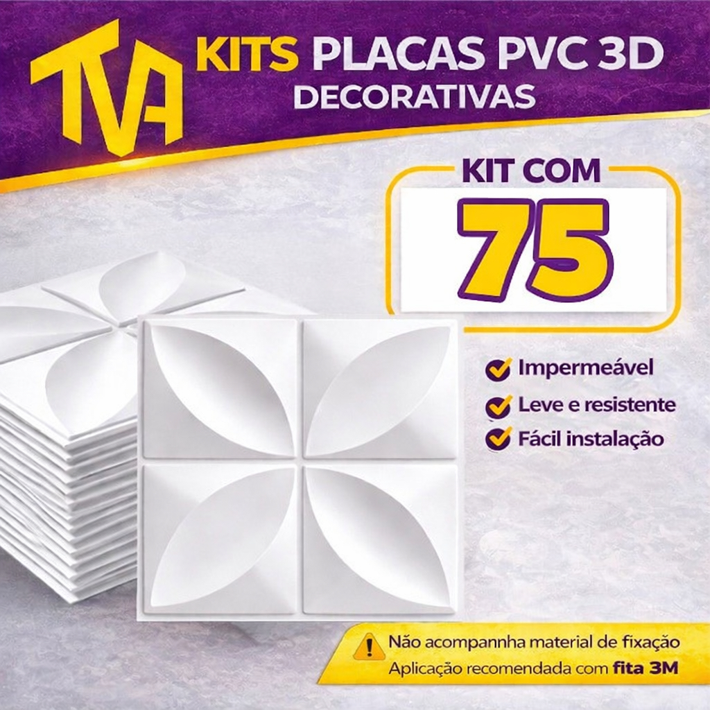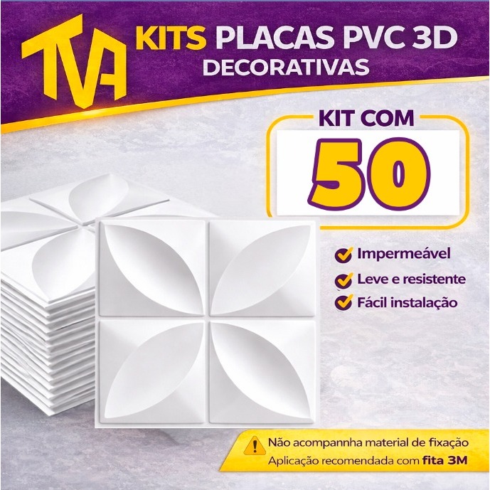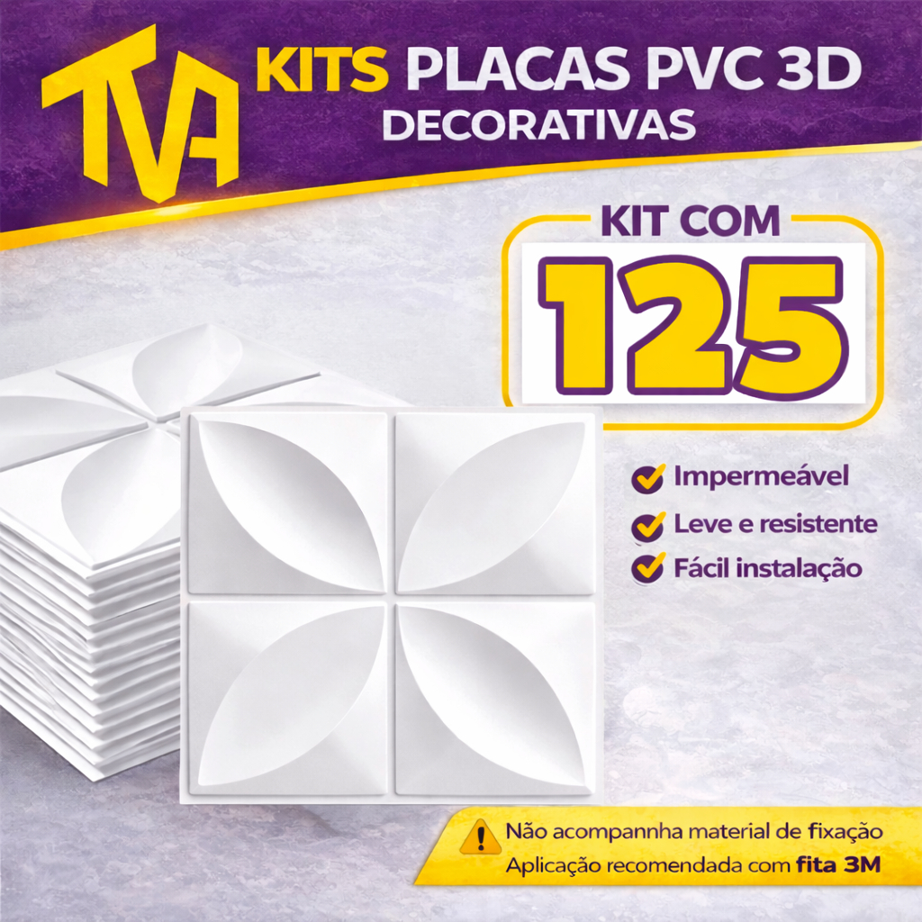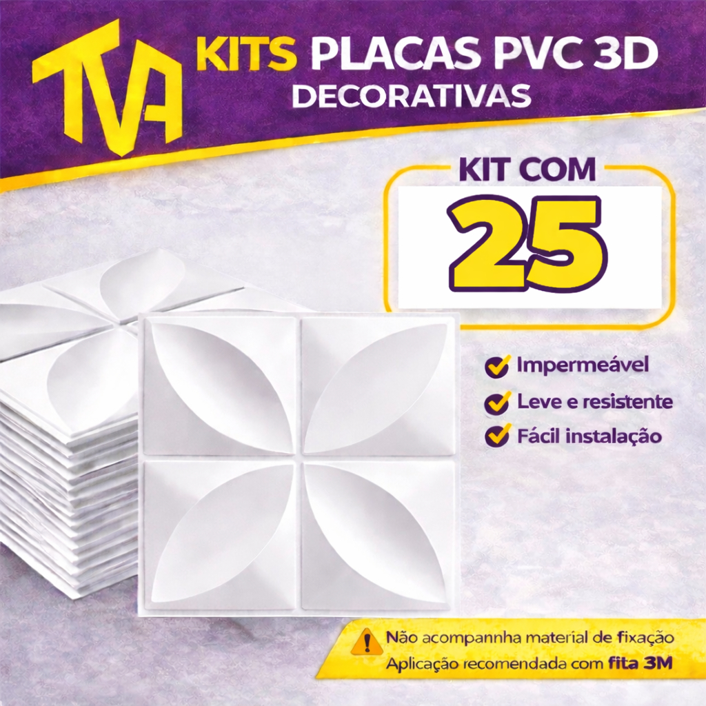 Kit 100 Placas PVC Revestimento 3D Decoracão Para Parede 25x25 cm