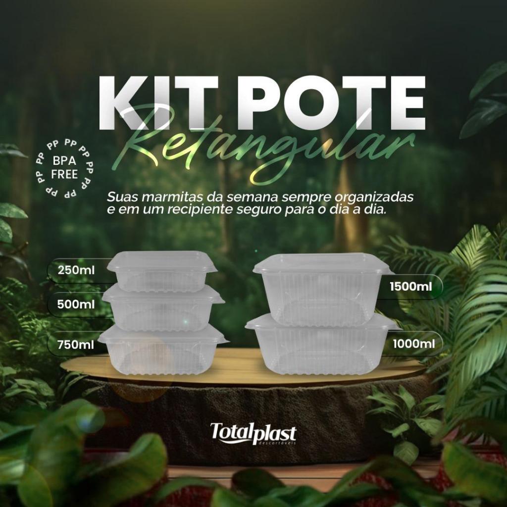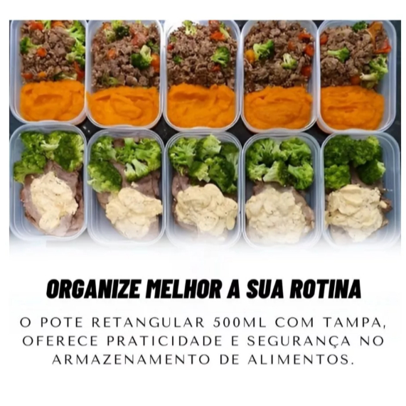 Kit Pote Retangular Com Tampa Plastico Marmitinha Fit Marmita Com 24 Unidades