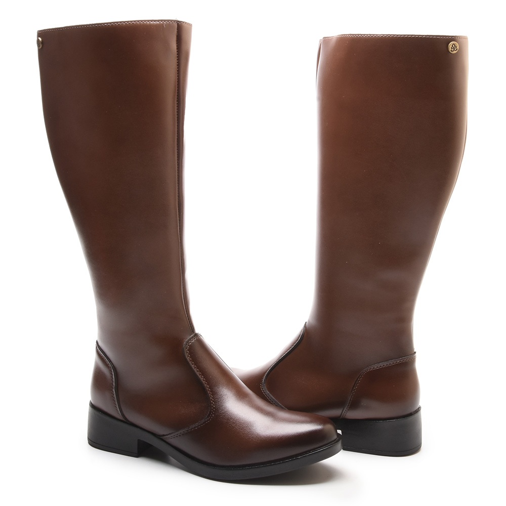 Bota Feminina Montaria Versales Bico Fino Cano Alto Confortável Salto Baixo Bloco Café Preto